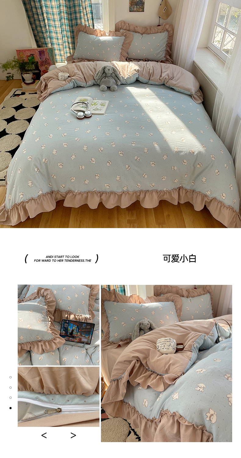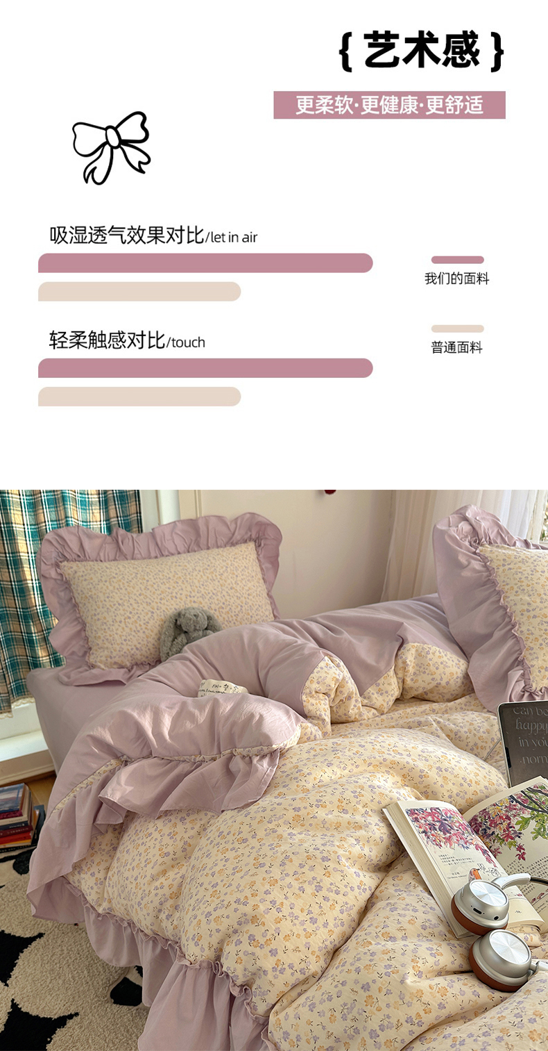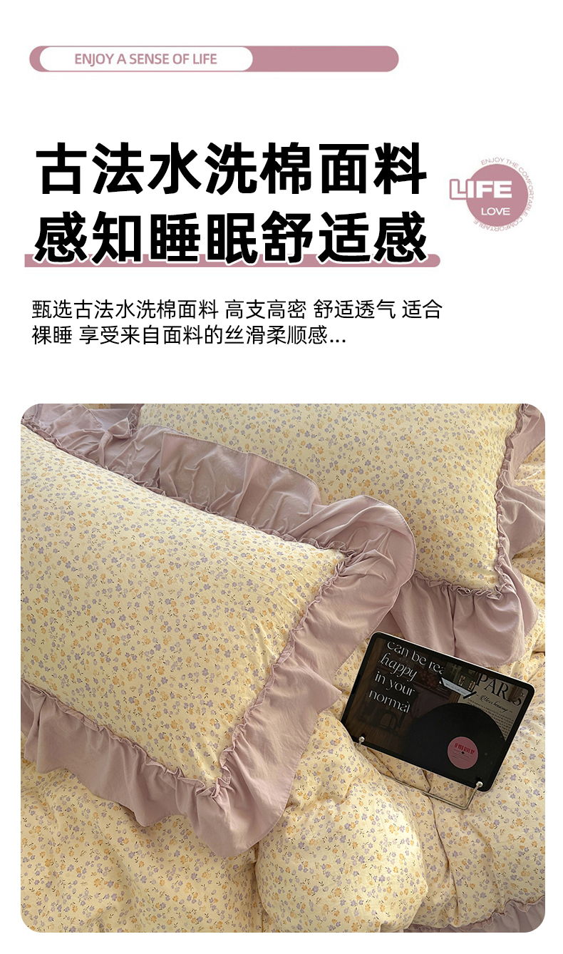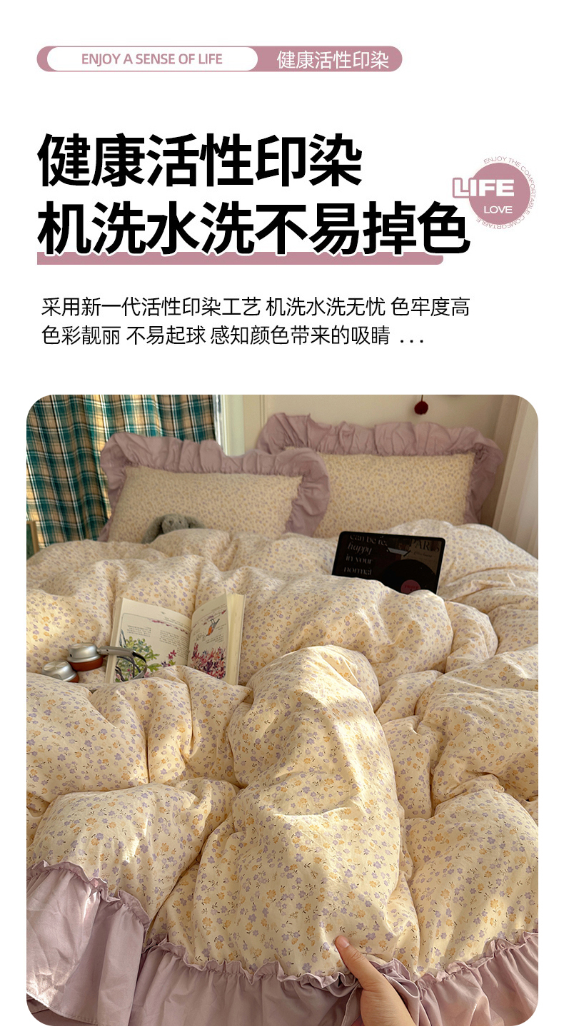 当前位置: 91家纺网 > 商品网购 > 床品套件 > 四件套 > 水洗棉四件套 > 凯洛奇 2026新款A类仿棉四件套古法水洗棉法式工艺花边套件(提供买家秀) 紫藤花语