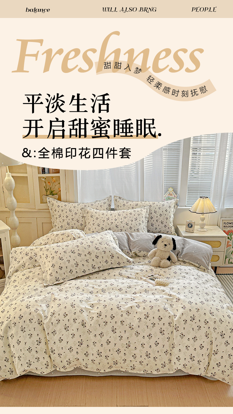 当前位置: 91家纺网 > 商品网购 > 床品套件 > 四件套 > 全棉普通四件套 > 春雨家居 2026新款全棉纯棉花ins减龄可爱小清新四件套 清秋夜曲