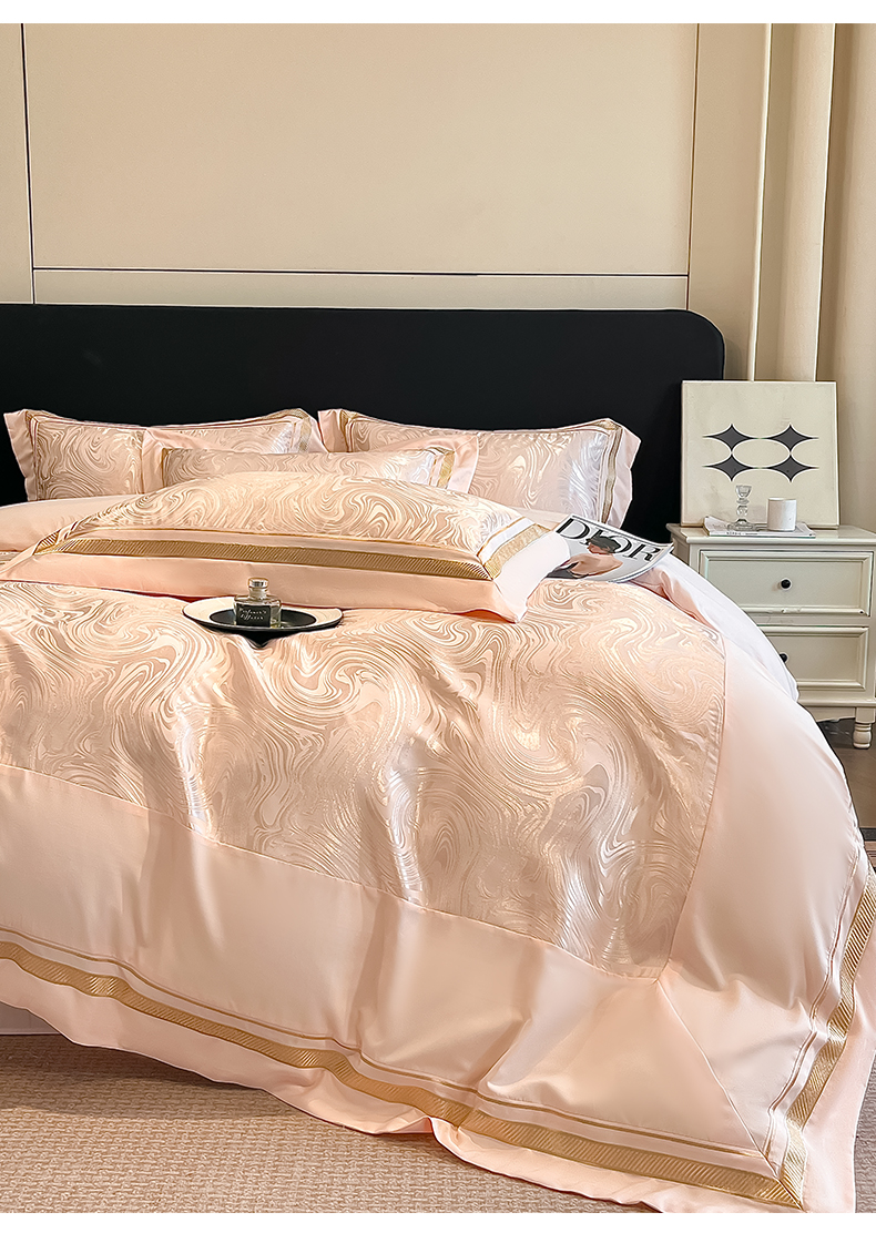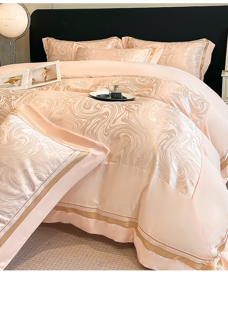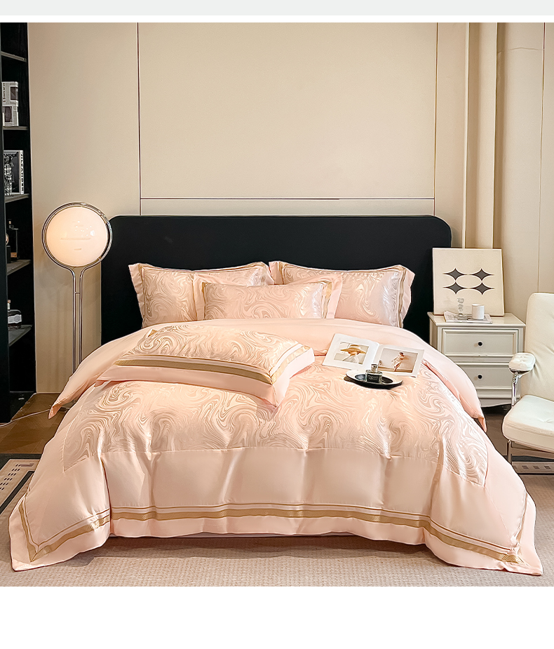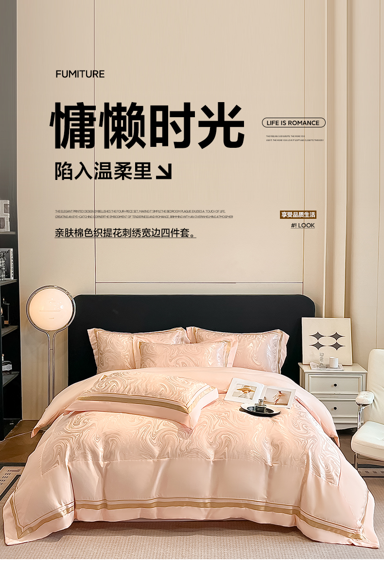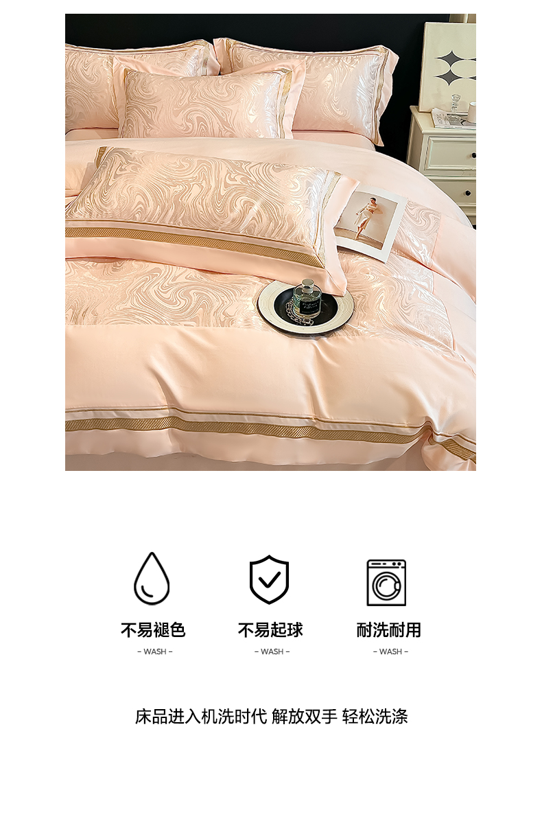 当前位置: 91家纺网 > 商品网购 > 床品套件 > 四件套 > 化纤普通四件套 > 博纳家纺 2026新款高端色织提花拼角绣花宽边亲肤棉四件套海韵系列 海韵-粉玉