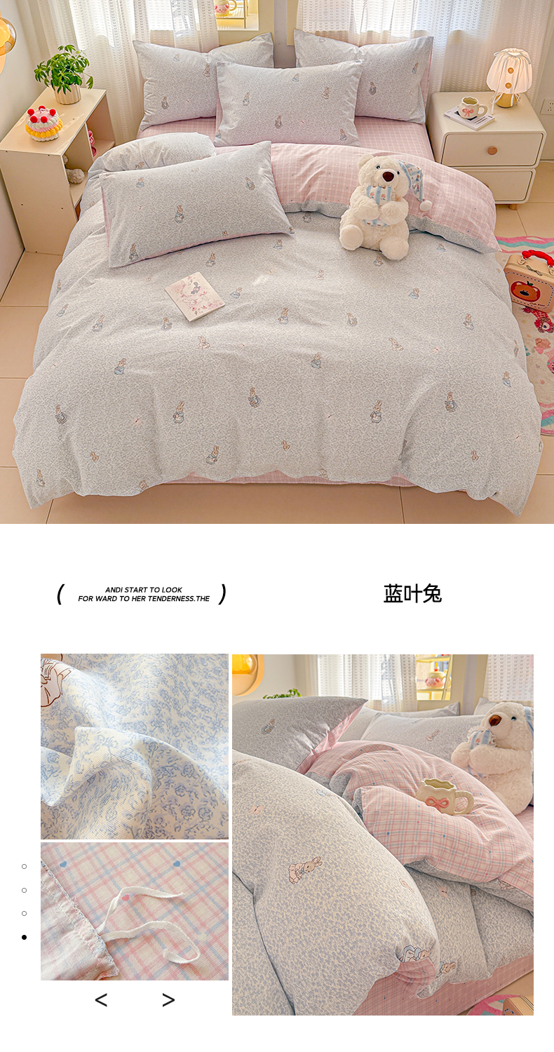 (总)呗旺鹿 2026新款全棉40支12868田园卡通小清新系列四件套,雅柔,蓝叶兔,软糖萌宠,三小只,童话乐园,小熊艺语,樱桃小象,H萝卜兔,L红茶兔兔,L欧包小奶兔,L浅糖兔叽