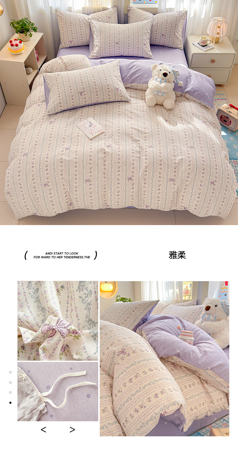 (总)呗旺鹿 2026新款全棉40支12868花草系列四件套,紫韵,丰收,花草集,花海紫嫣,花园兔,清雅,兔彼得,晓露含香