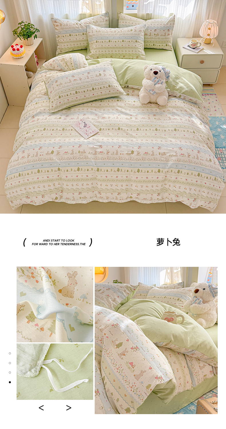 商品名称:呗旺鹿 2026新款全棉40支12868田园卡通小清新系列四件套 H萝卜兔