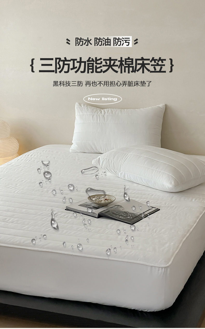 商品名称:三味舒屋 2026新款三防功能夹棉床笠床垫保护罩(严格控价:券后135/155/165) 净月白