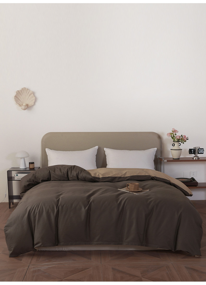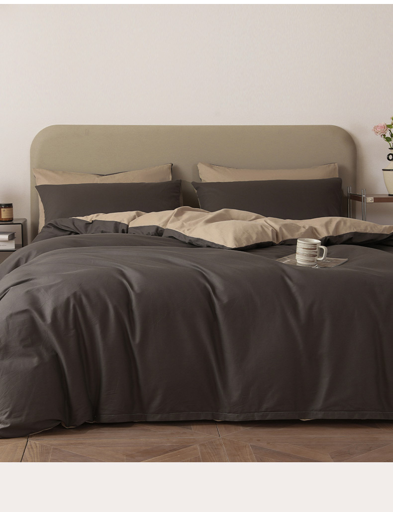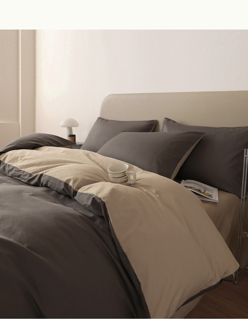 商品名称:盛馨家纺 2026新款40长绒棉ins美拉德色系纯色双拼全棉单品被套 深麻灰+白茶