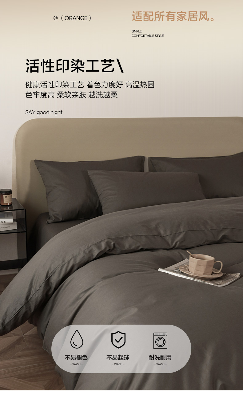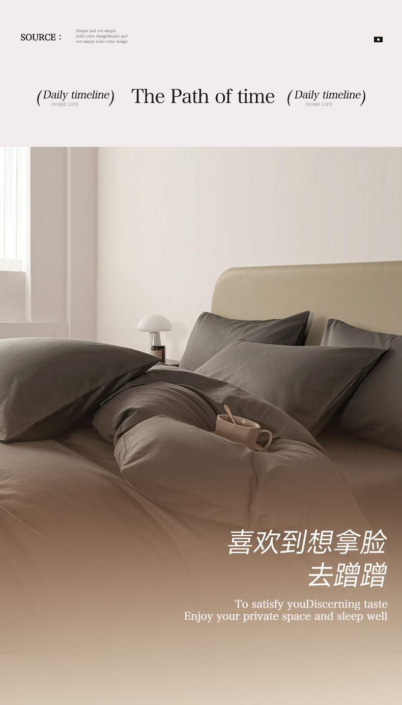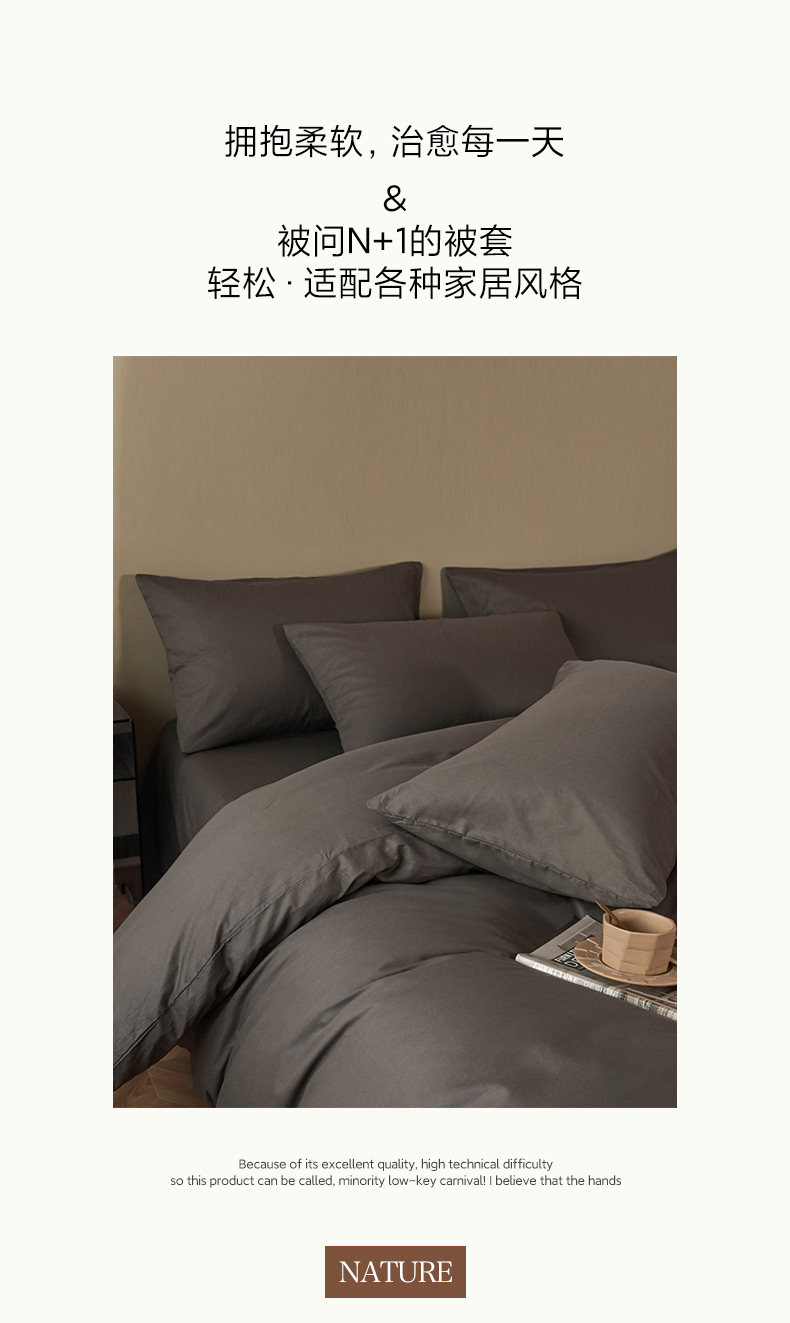 商品名称:盛馨家纺 2026新款40长绒棉ins美拉德色系纯色双拼全棉单品被套 深麻灰