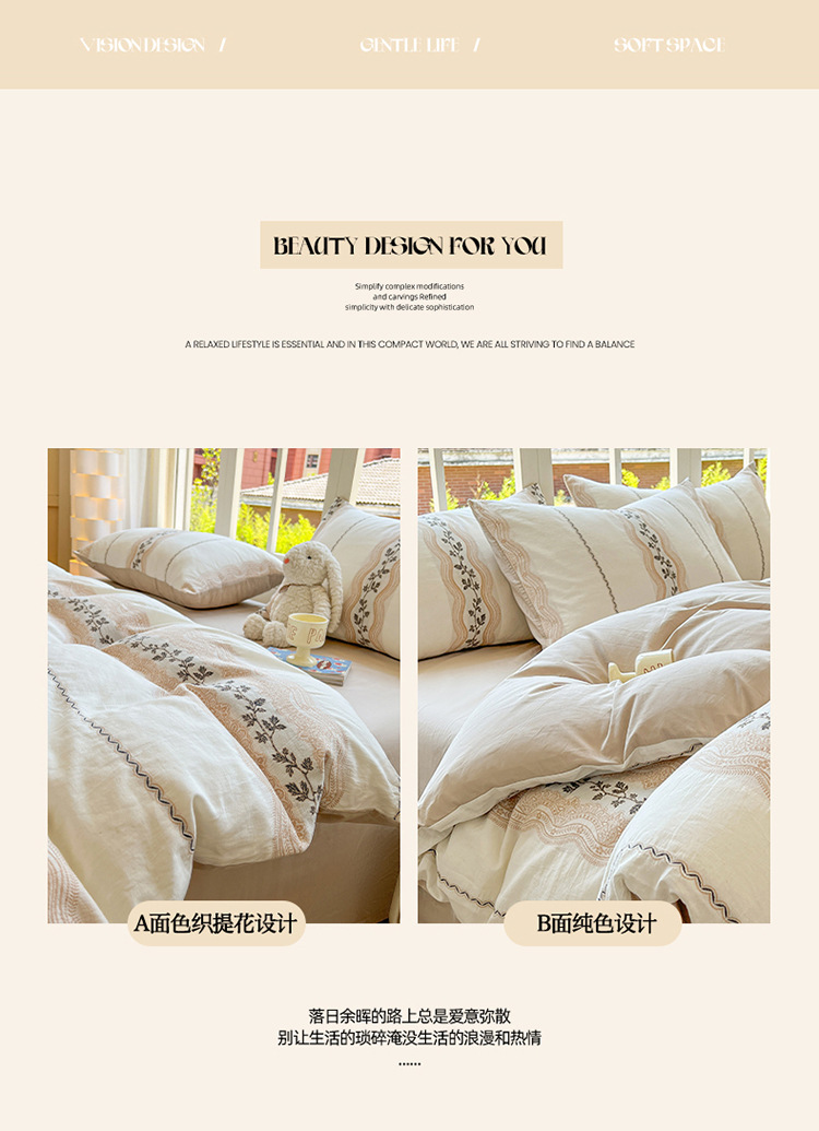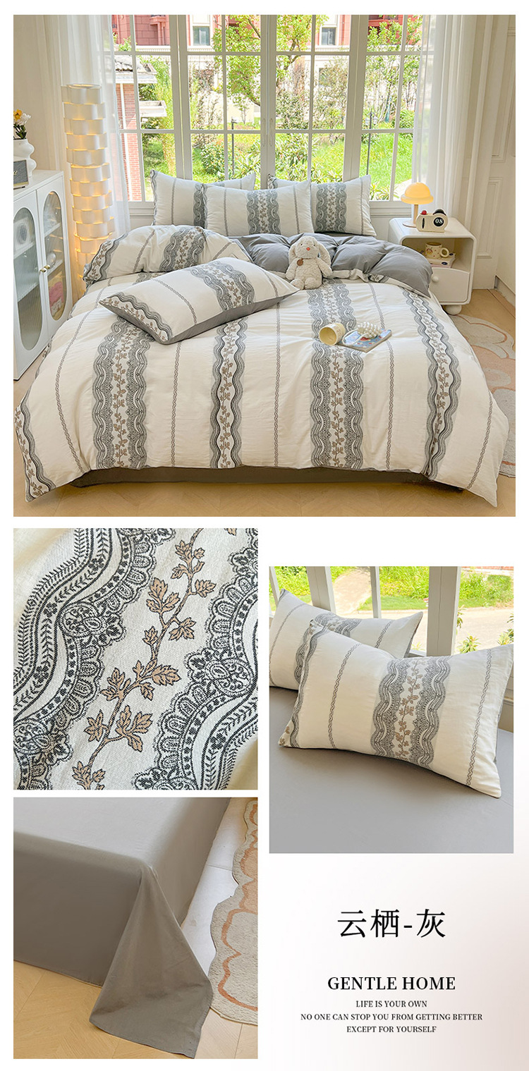 良品汇馆 2026【全棉色织提花四件套】全棉色织提花四件套良品A类双拼提花床品 云栖-灰