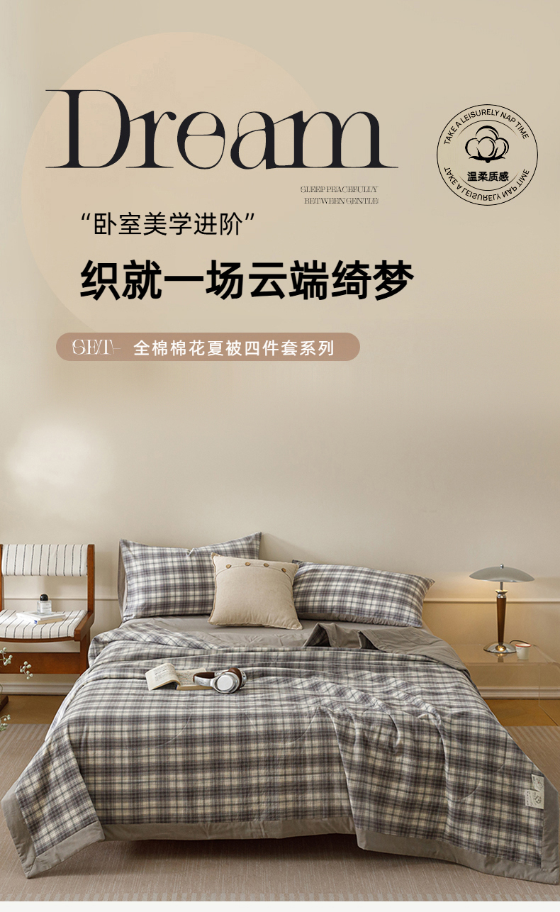 悦然毛巾被 2026新款全棉水洗棉夏被夏凉被空调被 暖格晚风灰