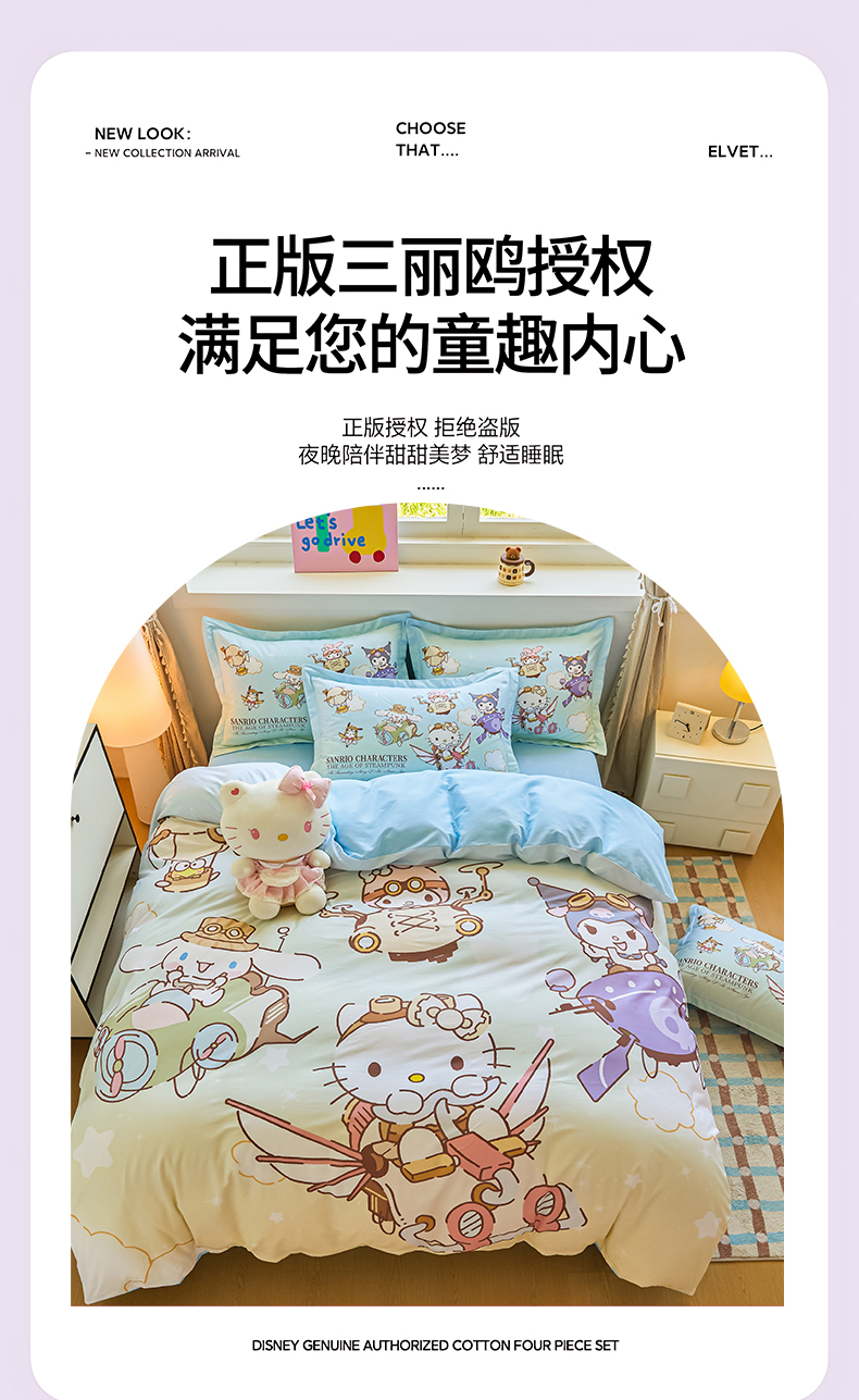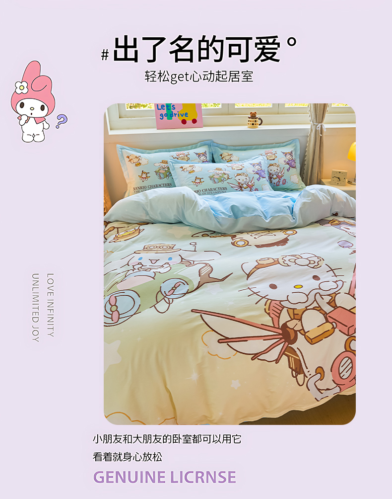 当前位置: 91家纺网 > 商品网购 > 床品套件 > 四件套 > 全棉普通四件套 > 浩诚 2026新款专版三丽鸥hellokitty库洛米正版授权大版全棉纯棉四件套 飞行员