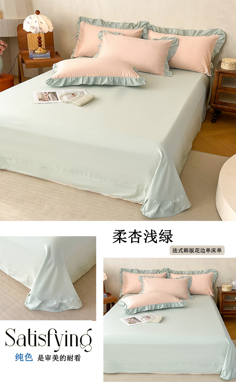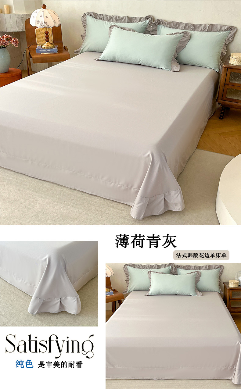(总)艾迪尚家纺 2026法式韩版荷叶边纯色长绒棉纯棉单床单单品床单床单单件,薄荷青灰,冰川蓝香草白,茉绿奶芙,奶芙慕粉,青提絮语,柔杏浅绿,瑞绿慕斯粉,雾蓝杏语,云白芽绿,云灰仙女粉