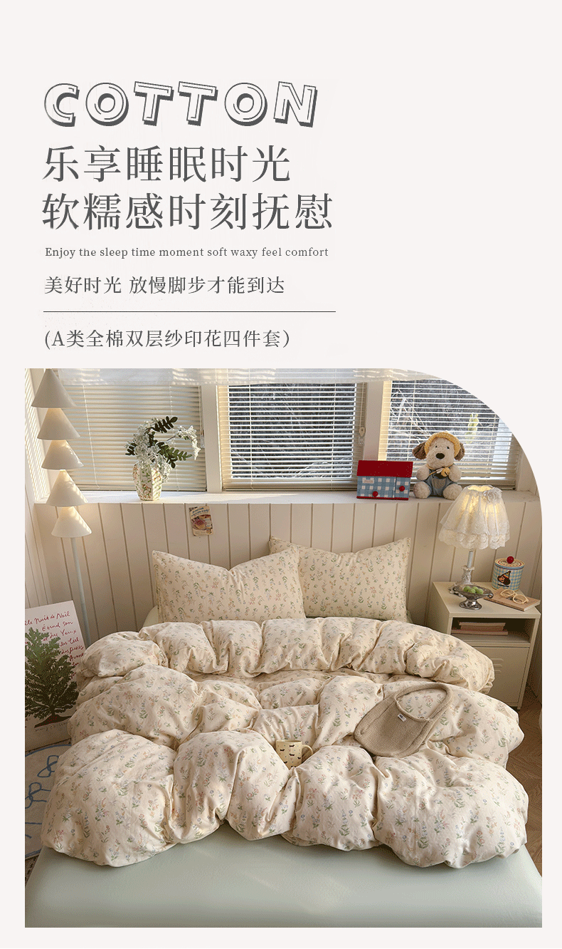 当前位置: 91家纺网 > 商品网购 > 床品套件 > 四件套 > 全棉普通四件套 > 爱思佳 2026新款全棉纯棉双层纱基款系列四件套 初春