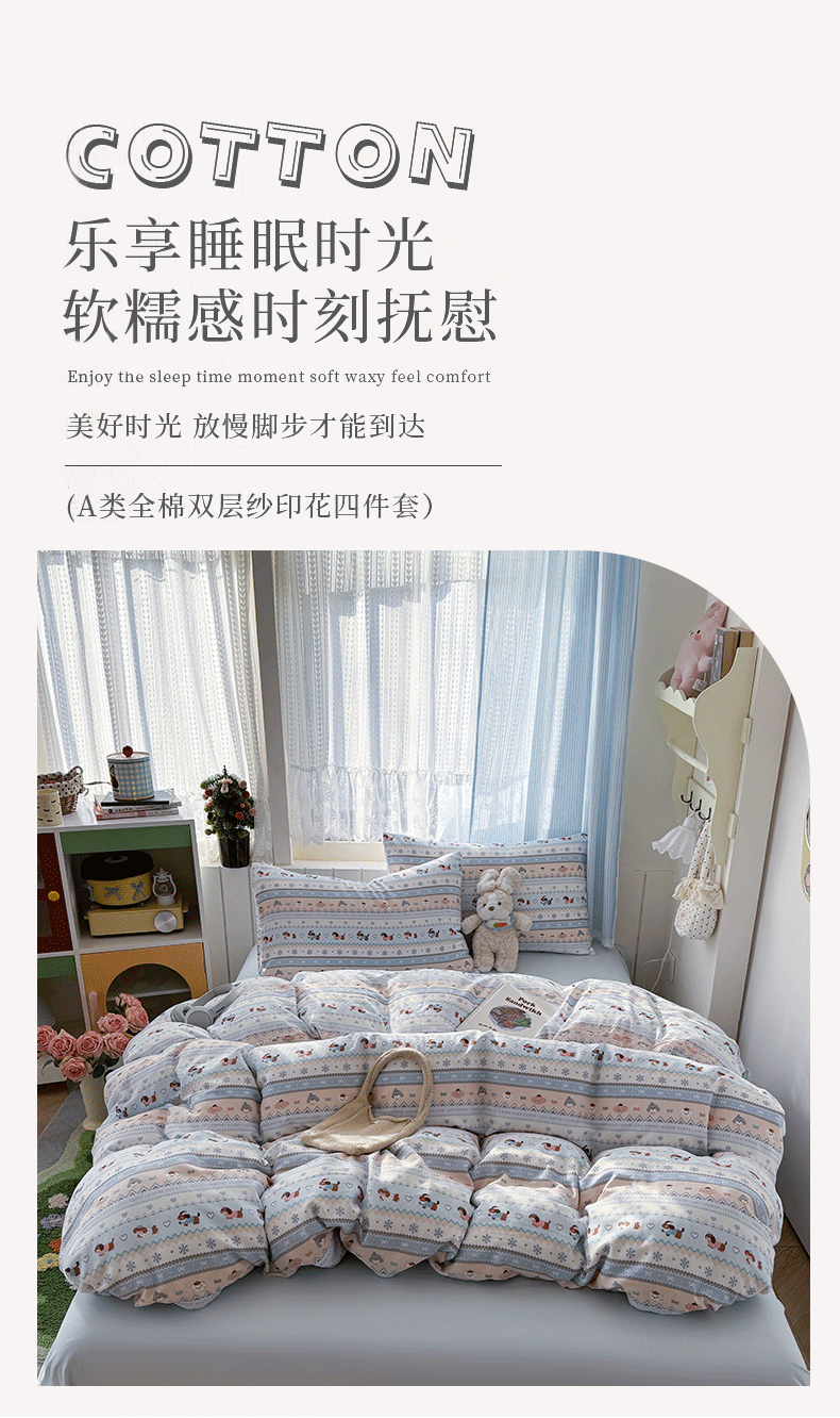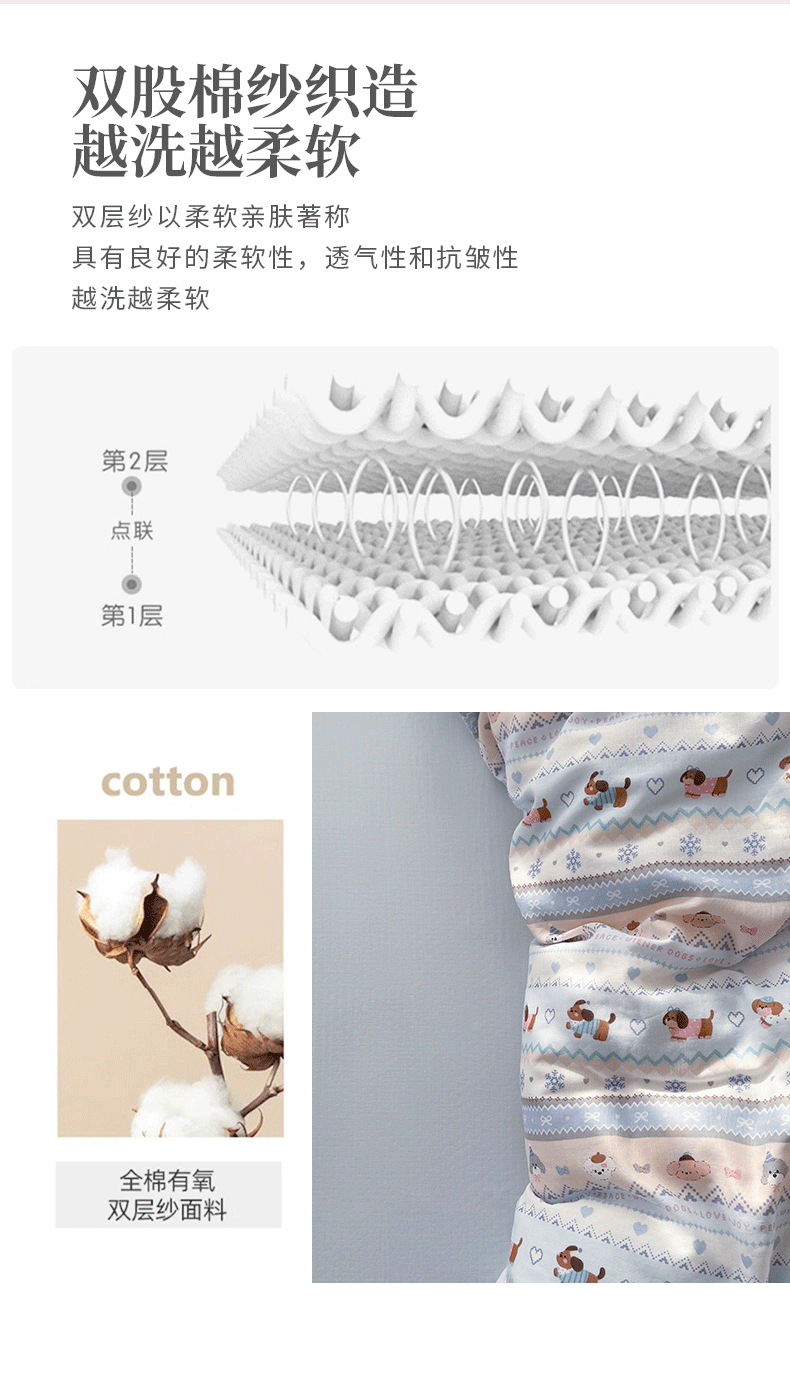 当前位置: 91家纺网 > 商品网购 > 床品套件 > 四件套 > 全棉普通四件套 > 爱思佳 2026新款全棉纯棉双层纱基款系列四件套 雪花狗