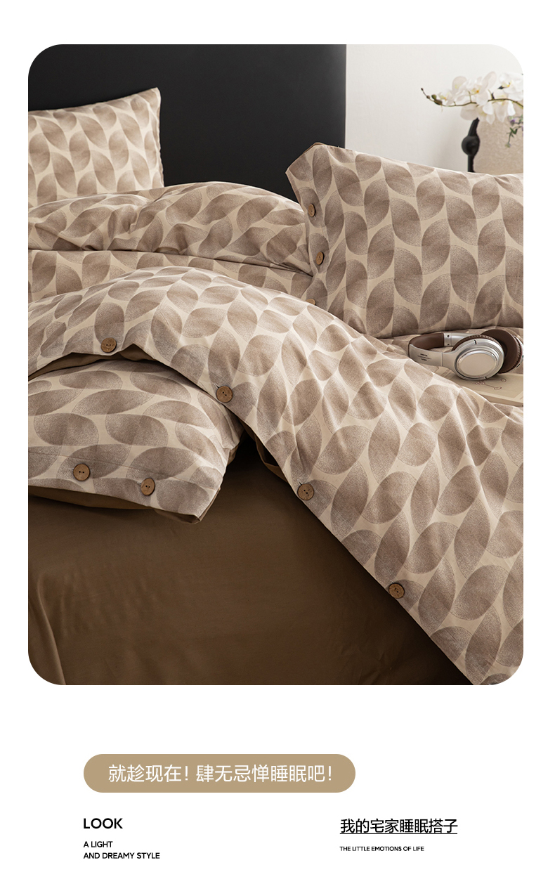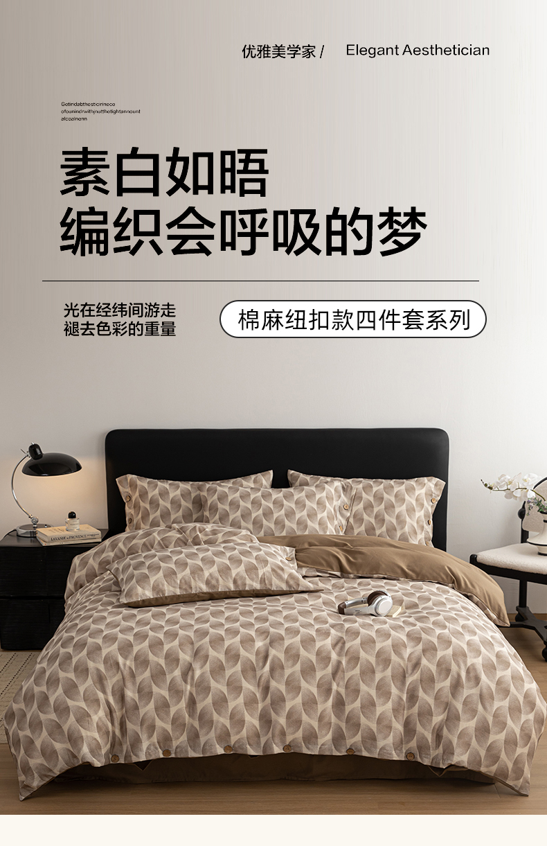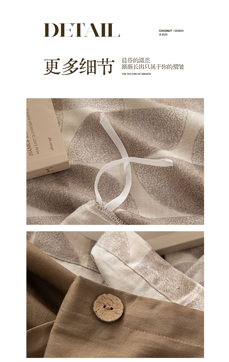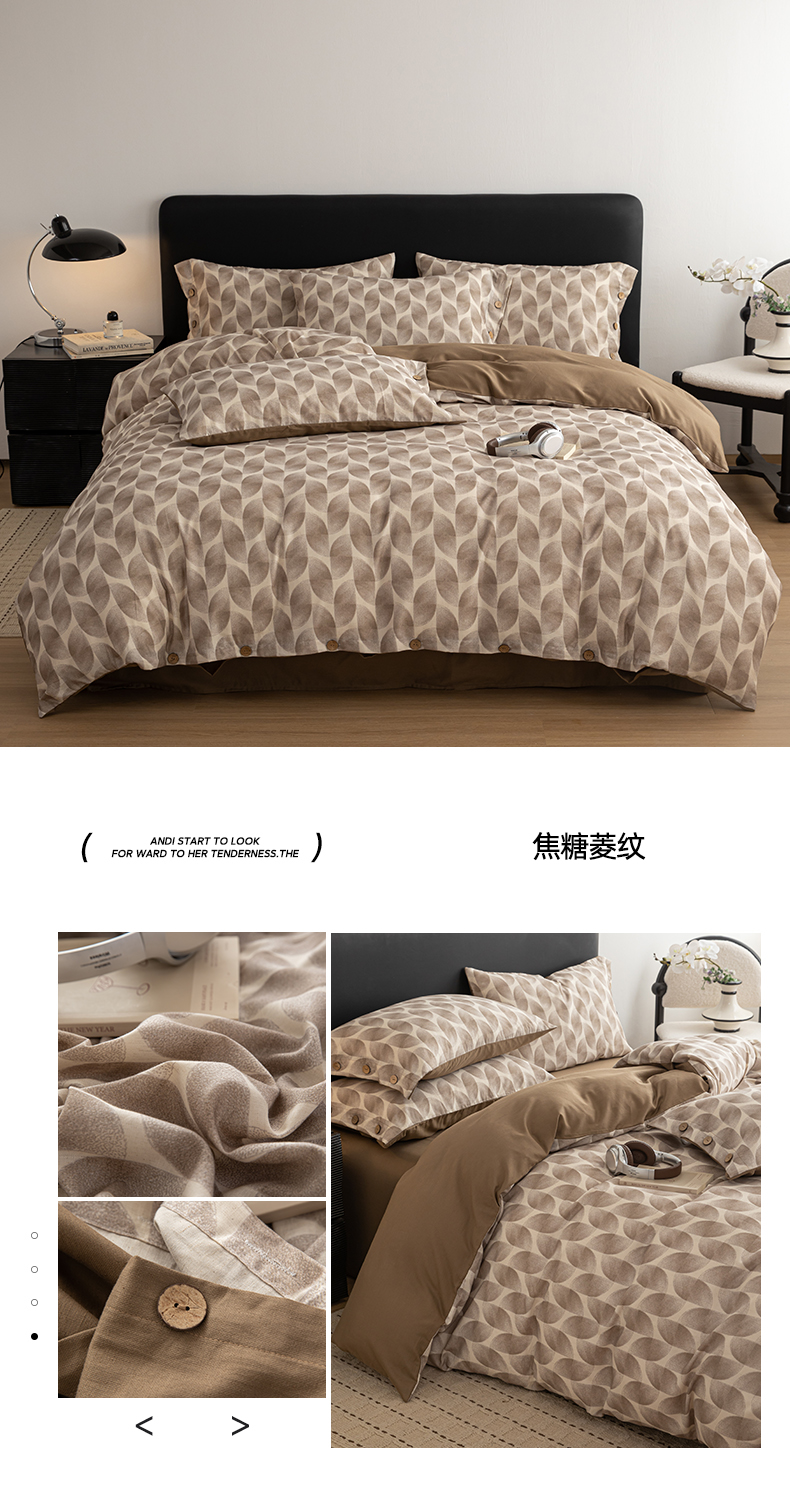 当前位置: 91家纺网 > 商品网购 > 床品套件 > 四件套 > 其它四件套 > 女子家纺 2026新款棉麻纽扣款四件套 焦糖菱纹