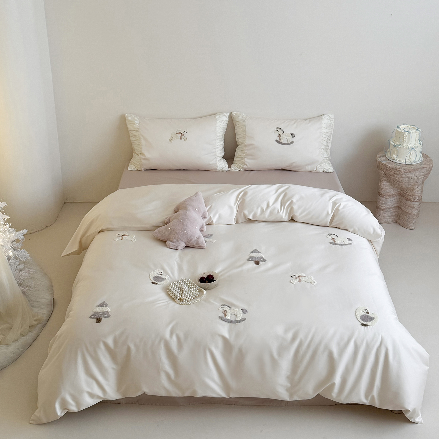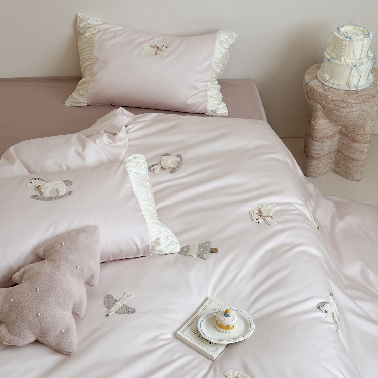 当前位置: 91家纺网 > 商品网购 > 床品套件 > 四件套 > 长绒棉四件套 > 鹿班家居 2026春季新品100S长绒棉毛巾绣系列四件套-半糖童话(标准会员-20元) 半糖童话-白色