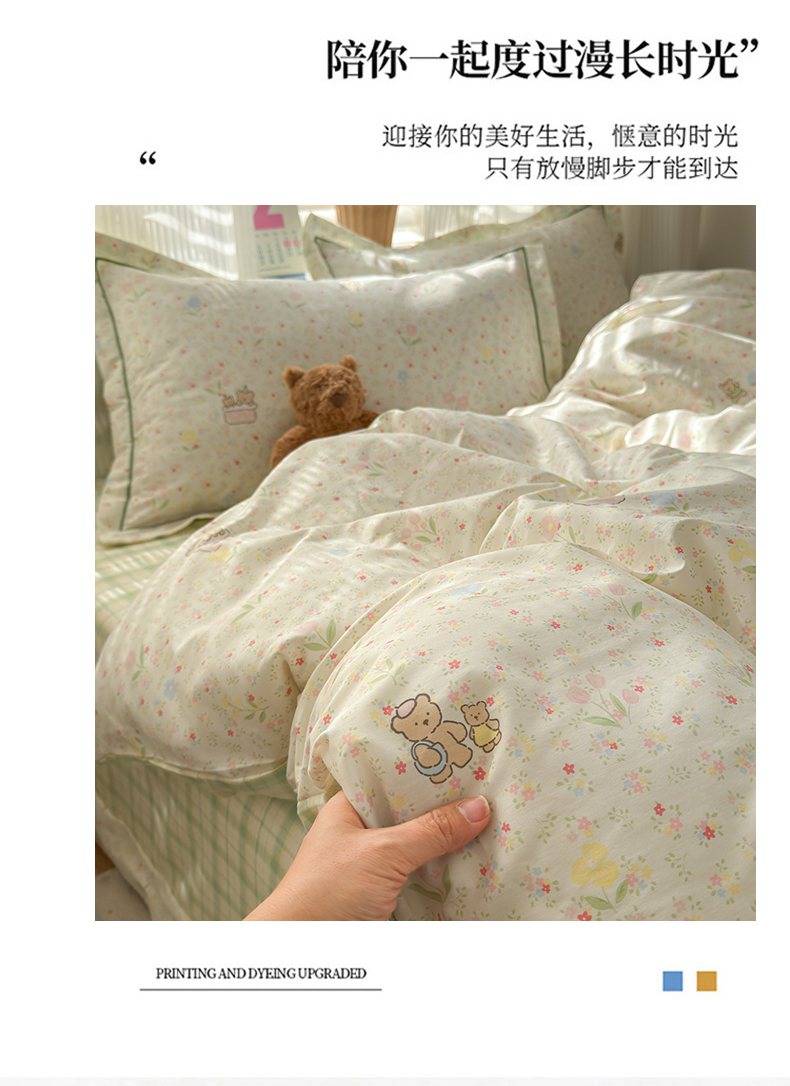 商品名称:乐童家纺 2026新款全棉网红直播爆款吊边一字绣工艺款四件套-系列三 可爱棕熊