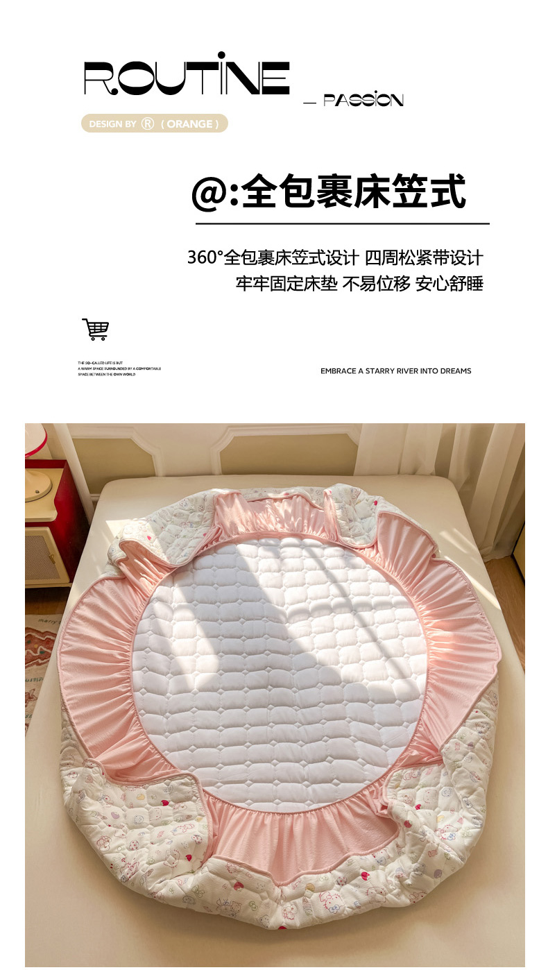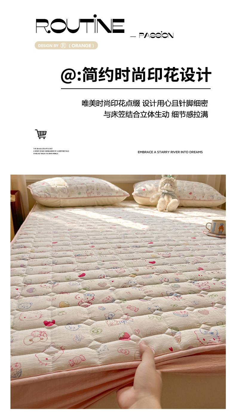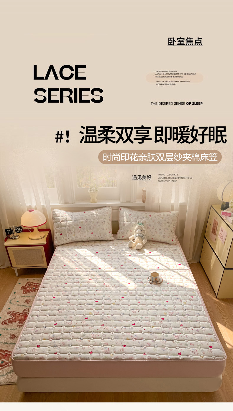 商品名称:沐慕 2026新款高克重印花云感皱皱纱夹棉床笠 甜品猫星球