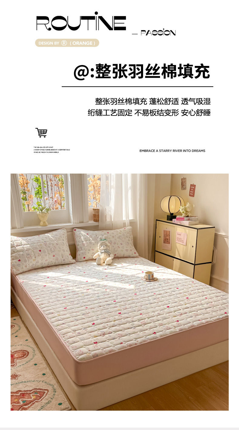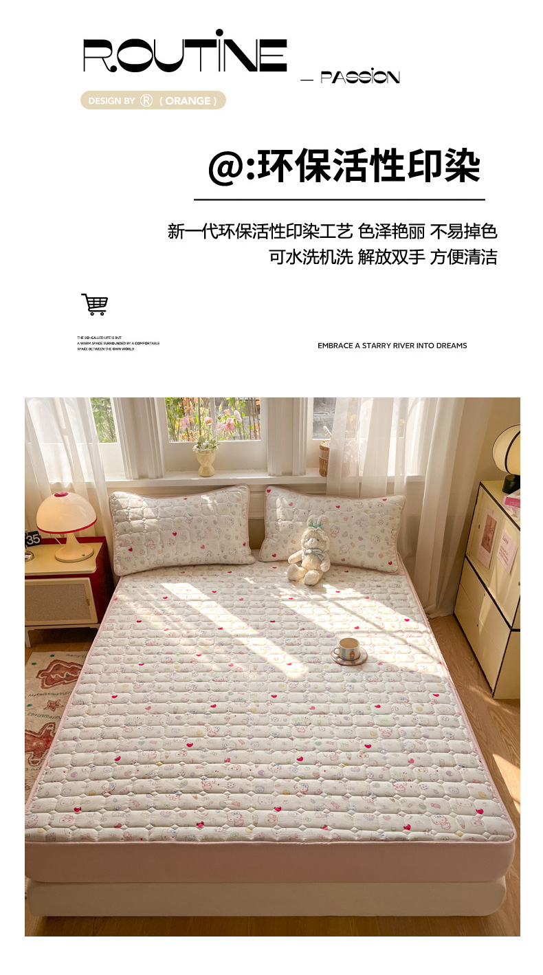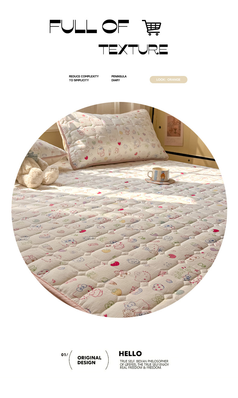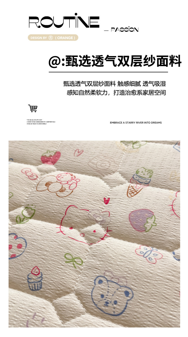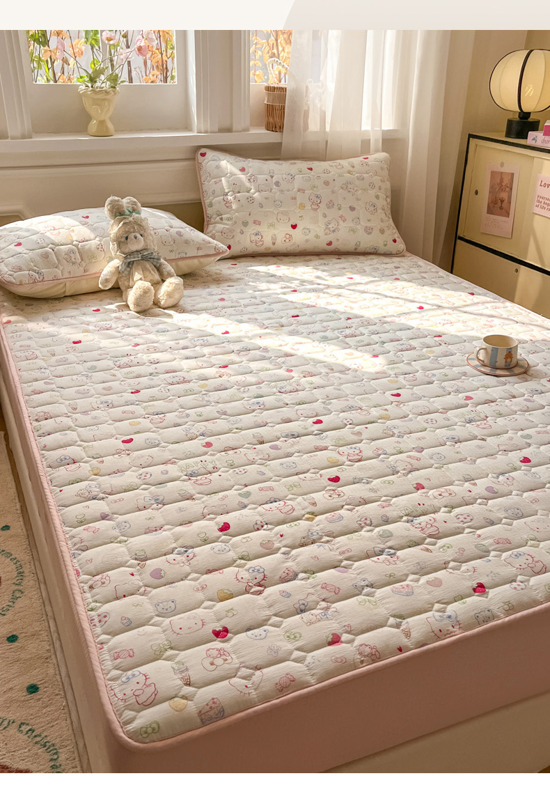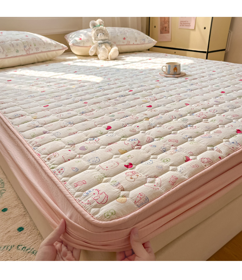 沐慕 2026新款高克重印花云感皱皱纱夹棉床笠 甜品猫星球