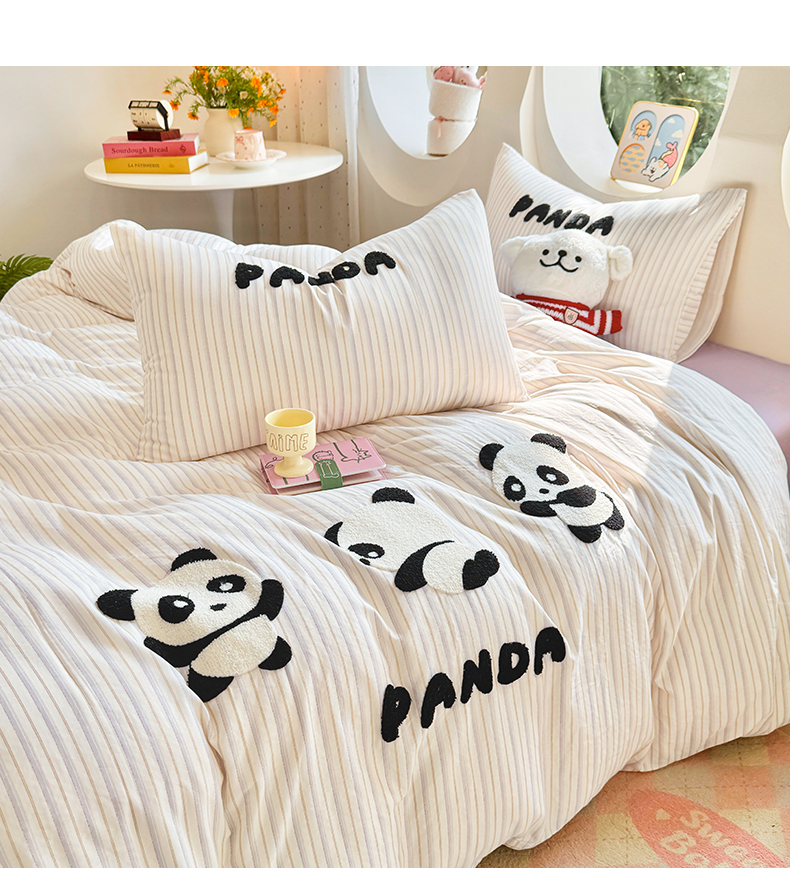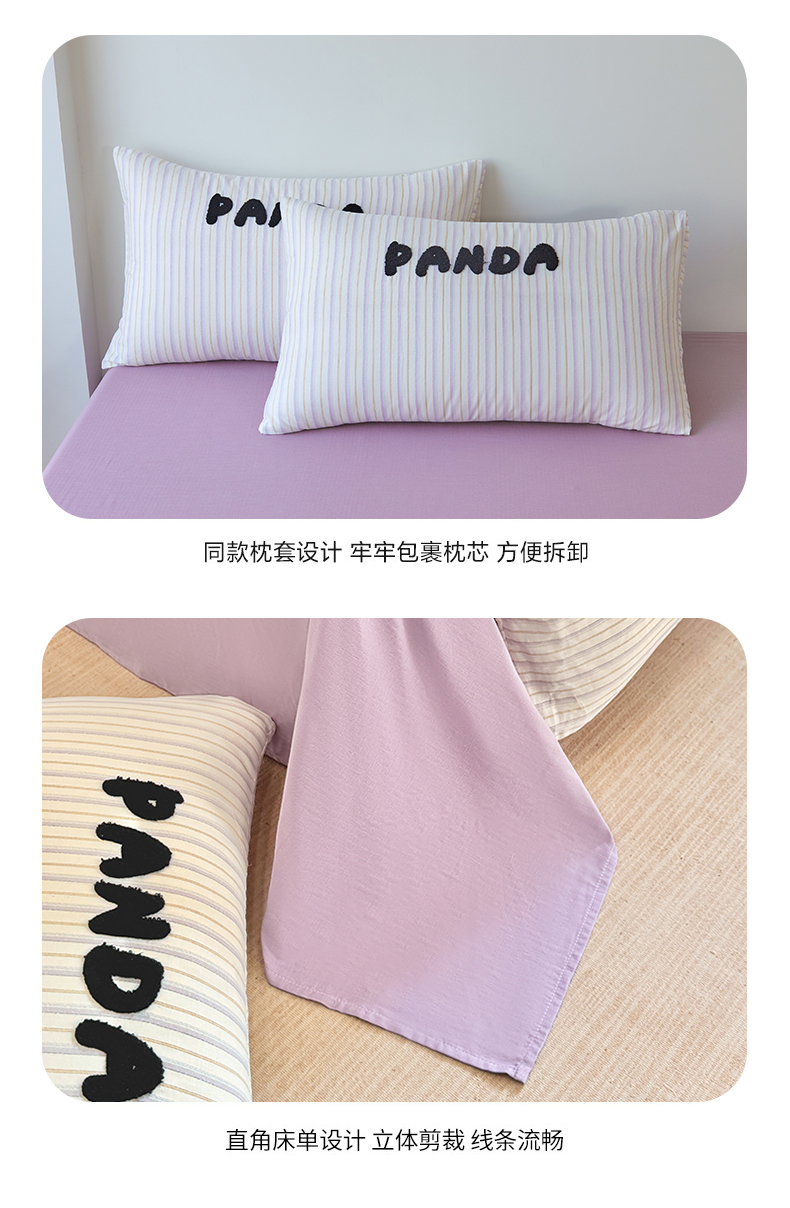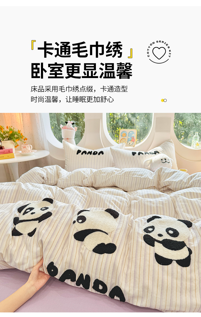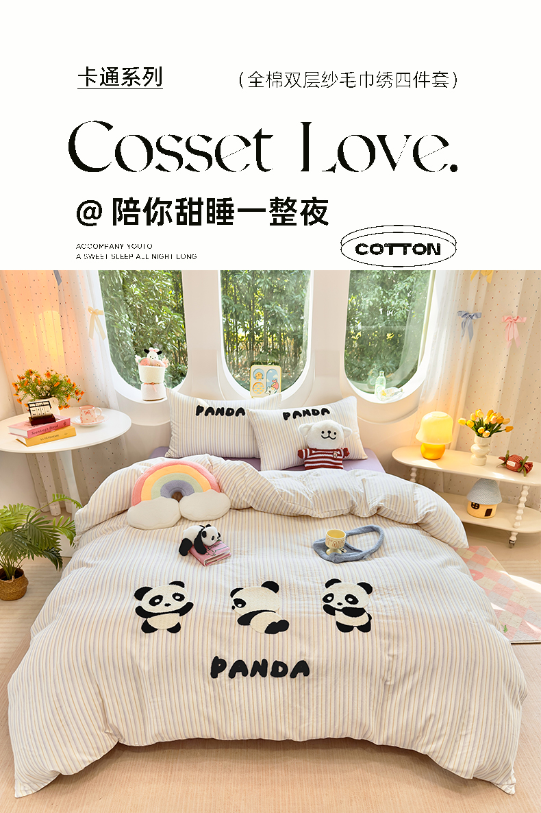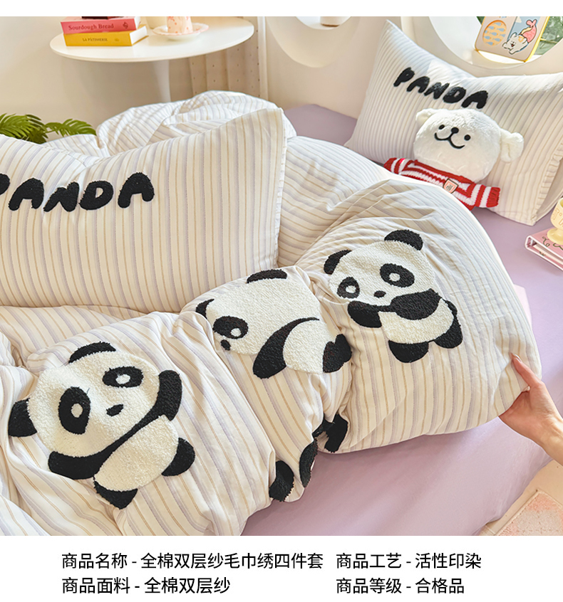 当前位置: 91家纺网 > 商品网购 > 床品套件 > 四件套 > 双层纱四件套 > 爱思佳 2026新款双层纱印+毛巾绣系列四件套 熊猫团子