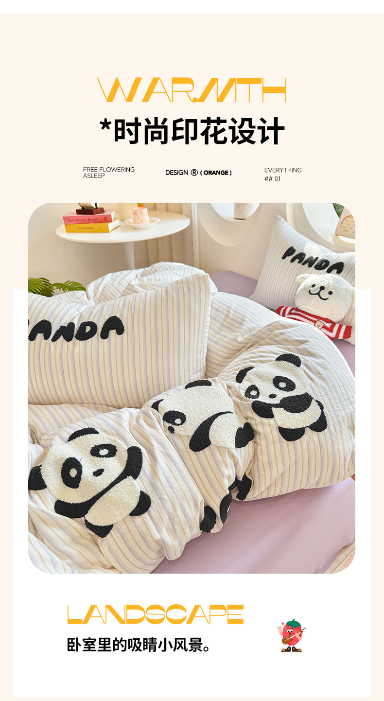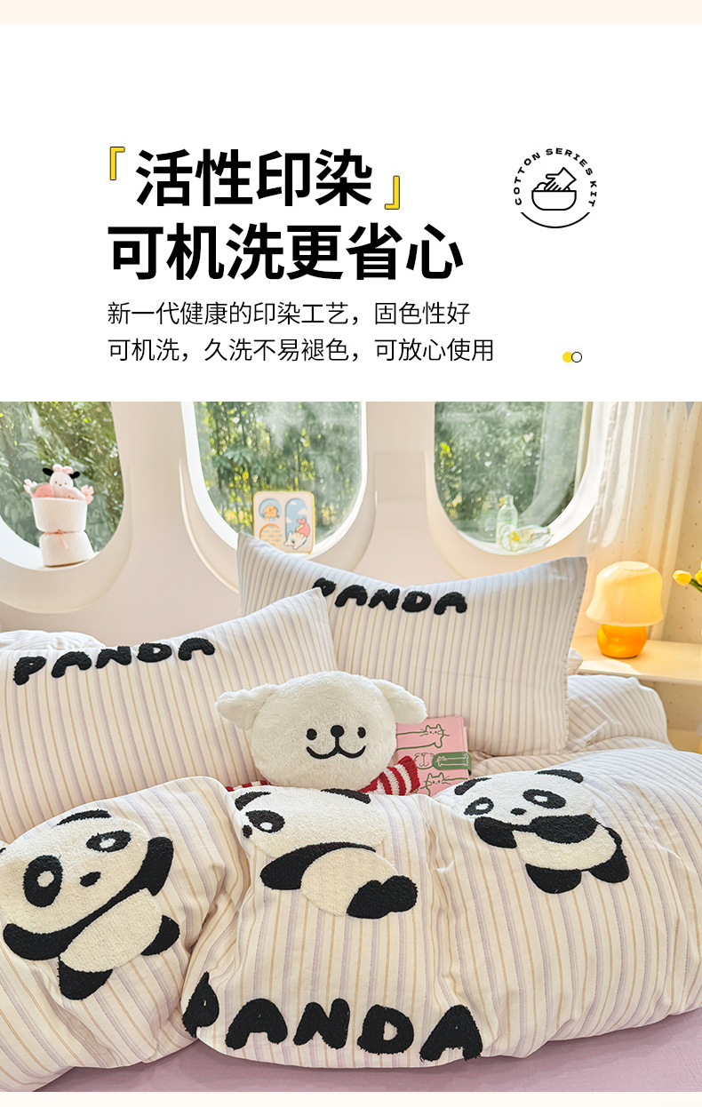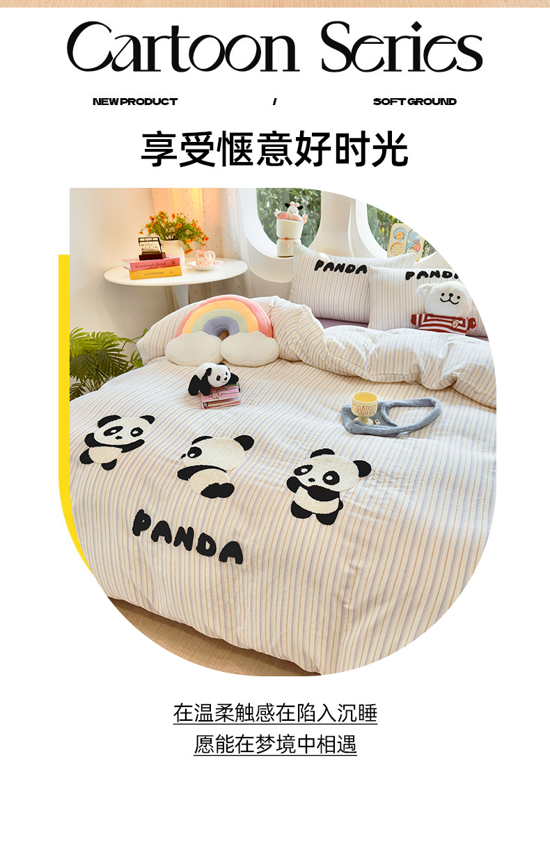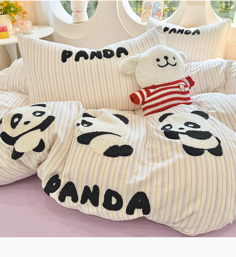 当前位置: 91家纺网 > 商品网购 > 床品套件 > 四件套 > 双层纱四件套 > 爱思佳 2026新款双层纱印+毛巾绣系列四件套 熊猫团子