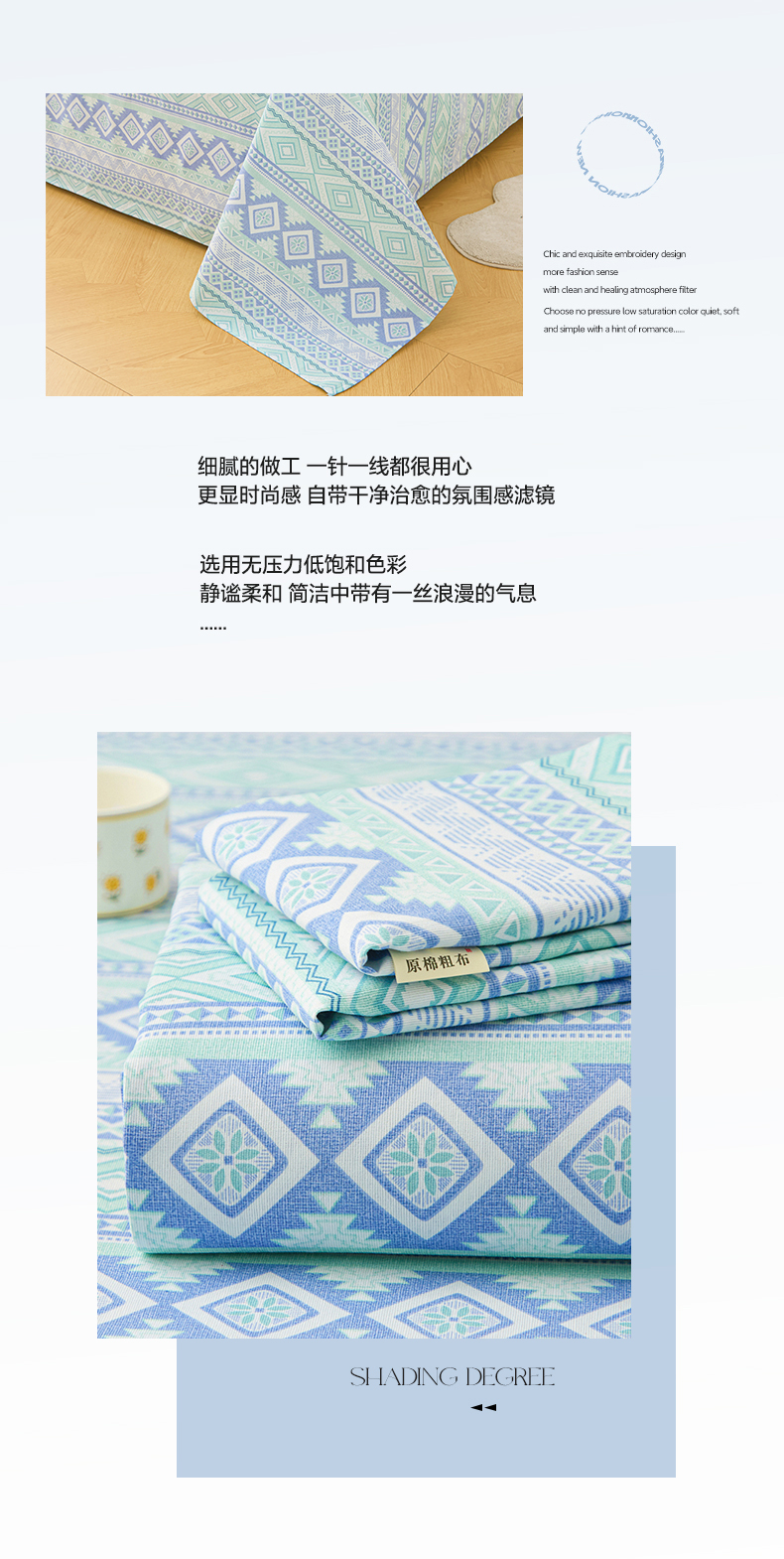 • 91家纺网 家纺一手货源 找家纺 棉乐町家居 2026新款原棉标印花老粗布床单 蓝色恋格