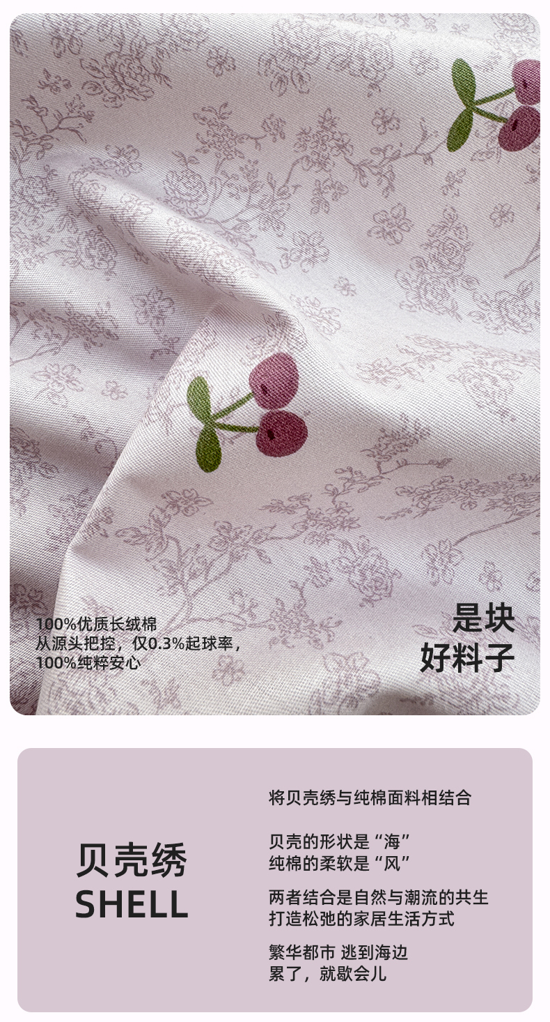 (总)浮光家居 2026新款全棉贝壳边纯棉单被套系列2,布歌紫,蝶恋花,爱丽花园,寻微,线韵时尚灰,机灵猫,星慕,夏日恋格黄,夏日恋格粉,夏日恋格兰,花边兔
