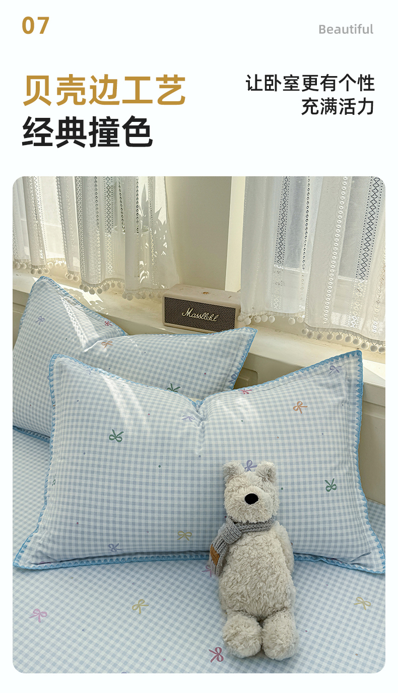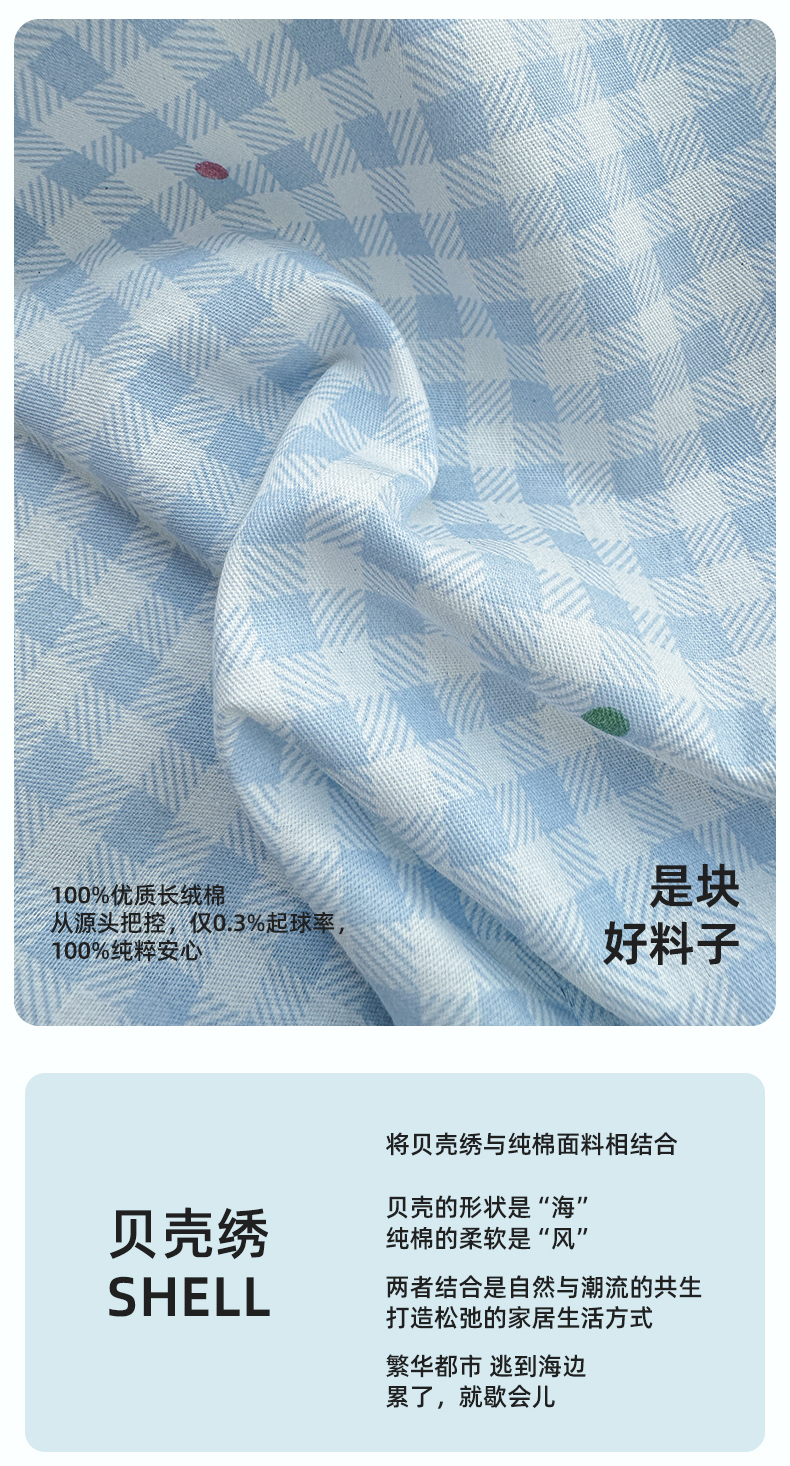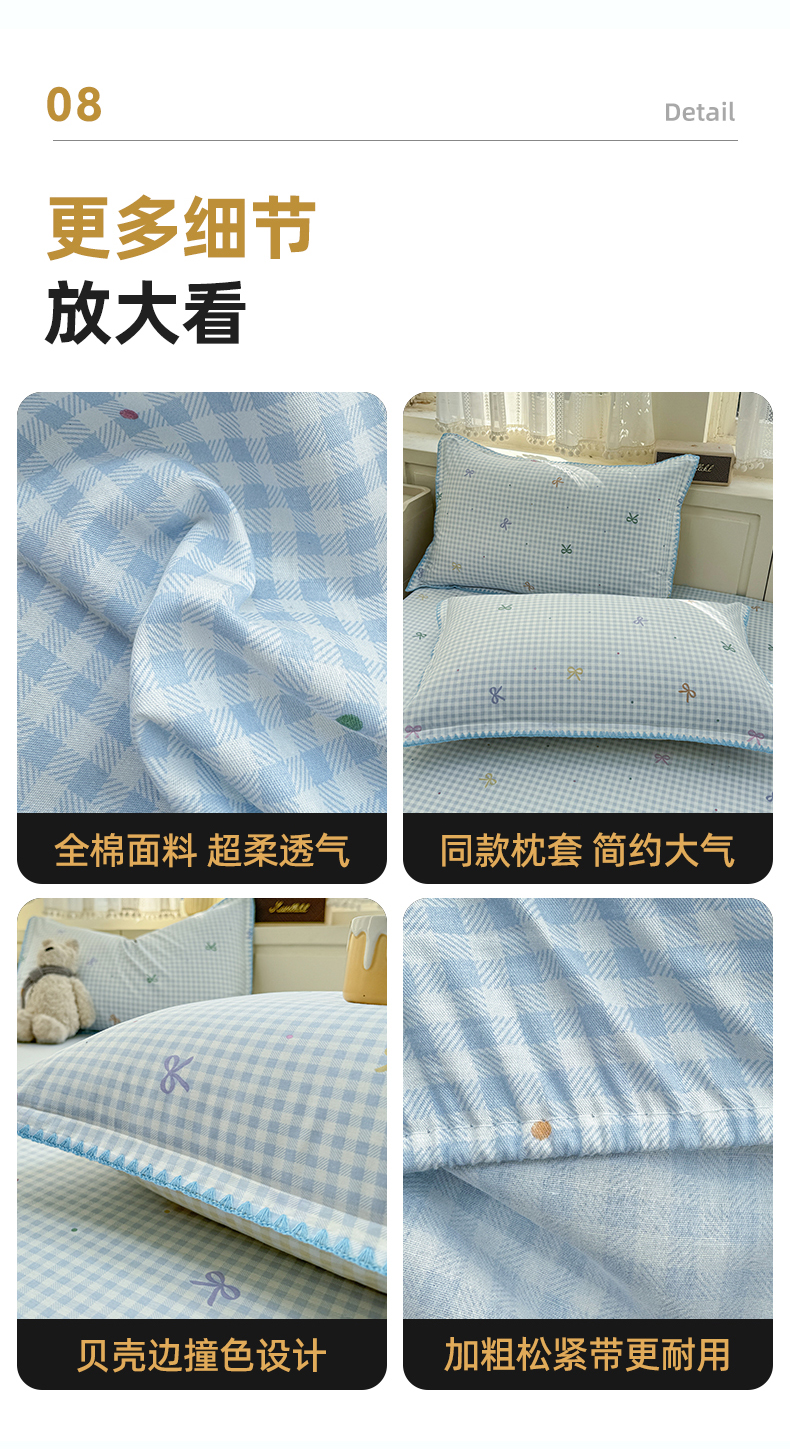 商品名称:浮光家居 2026新款全棉贝壳边纯棉单床笠系列2 夏日恋格兰