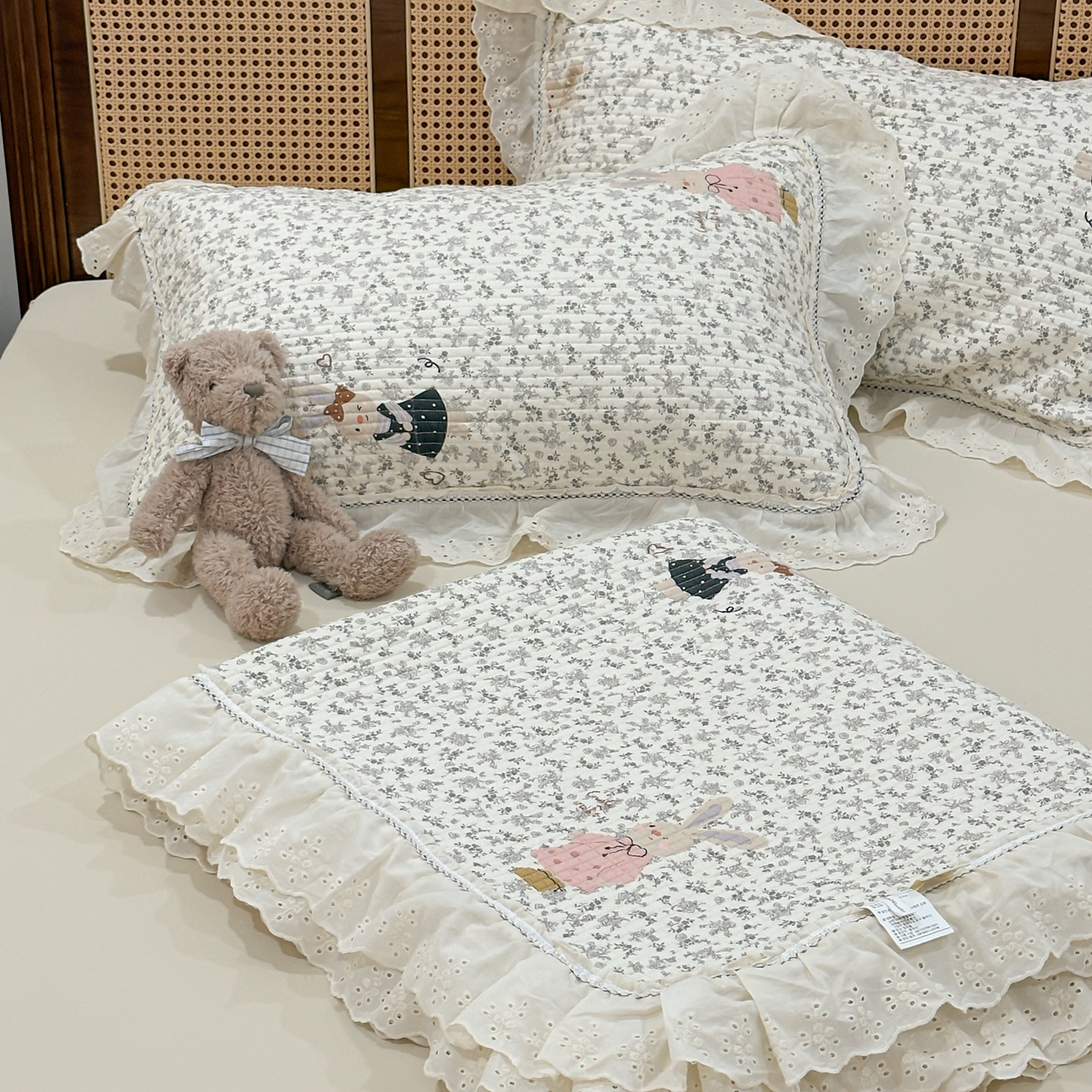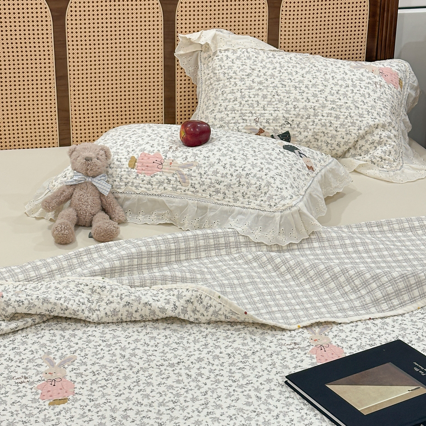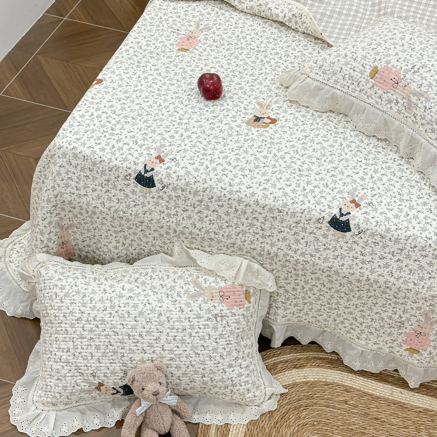 床盖工厂店 2025新款法式双面全面填充棉花床盖三件套 哆咪兔