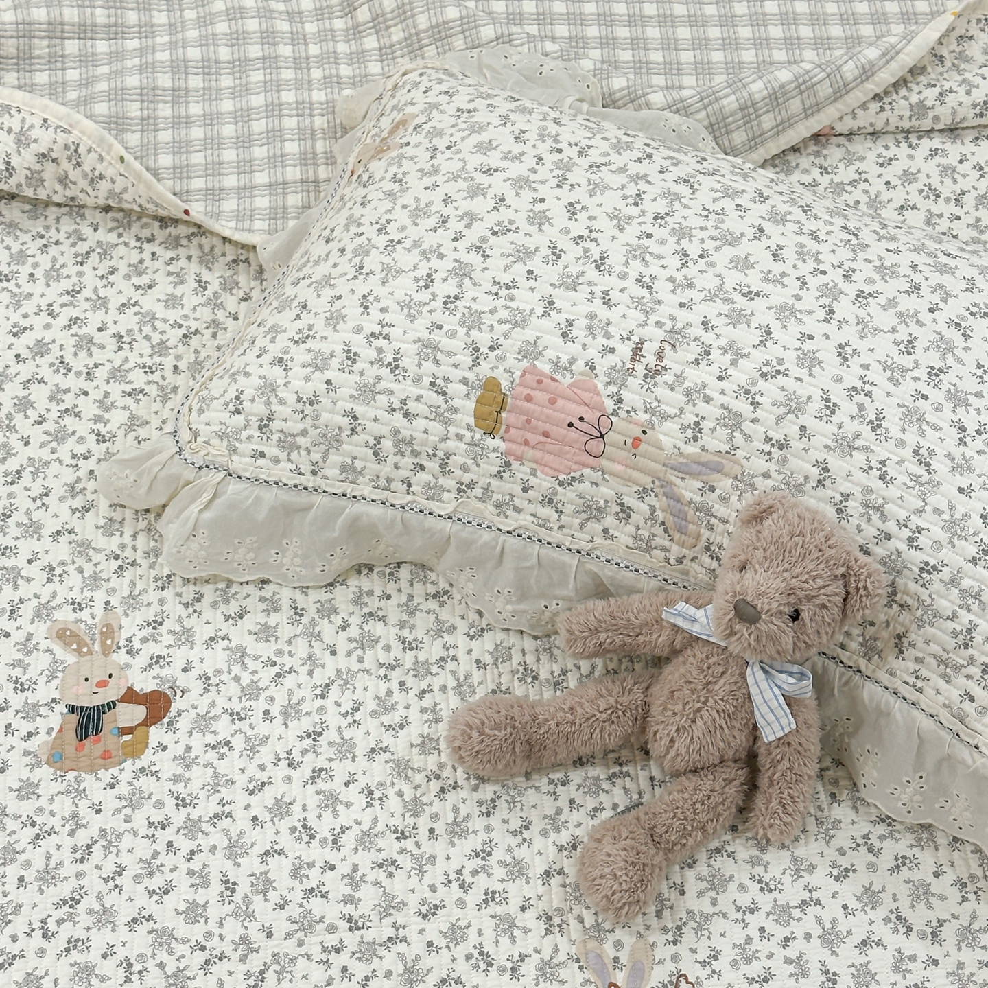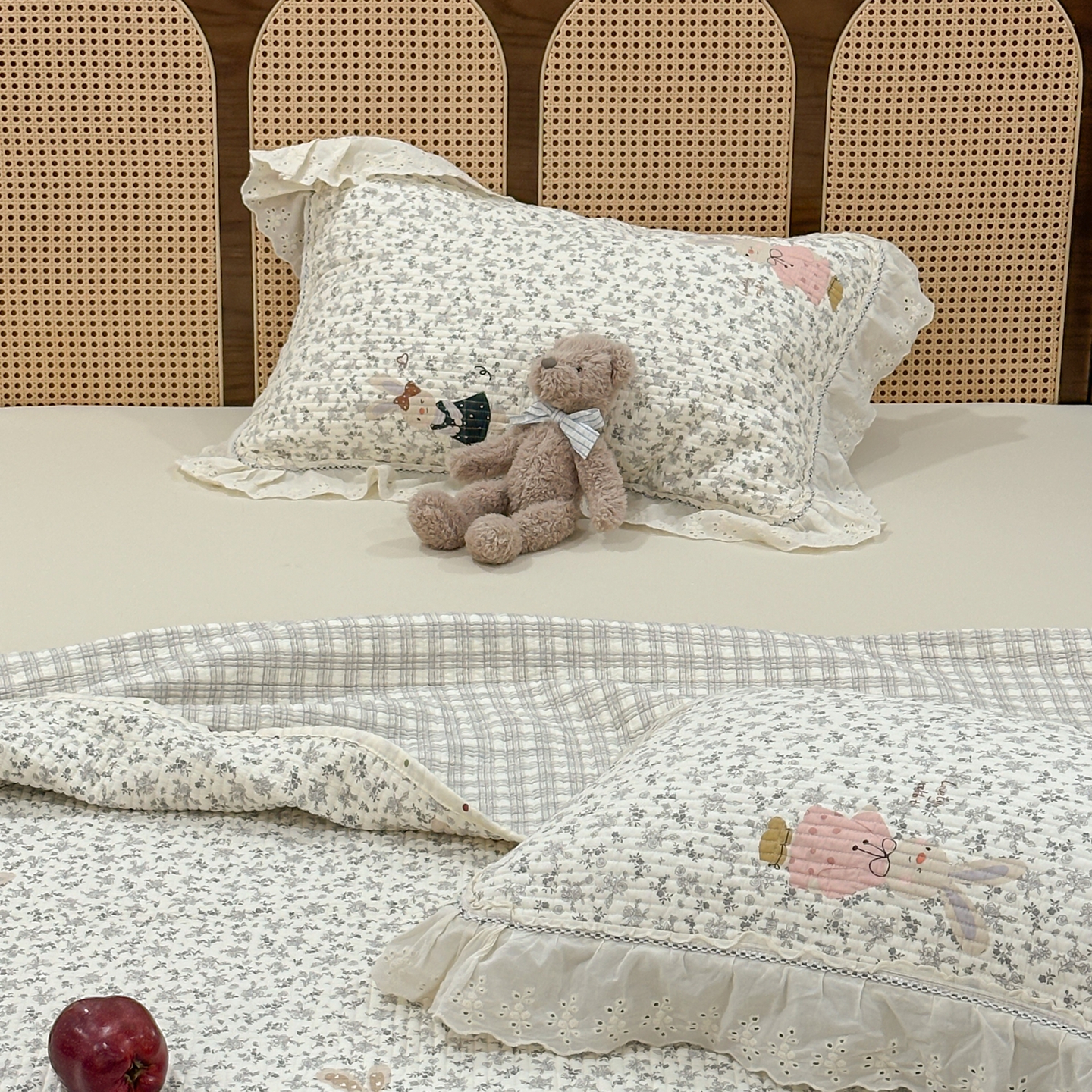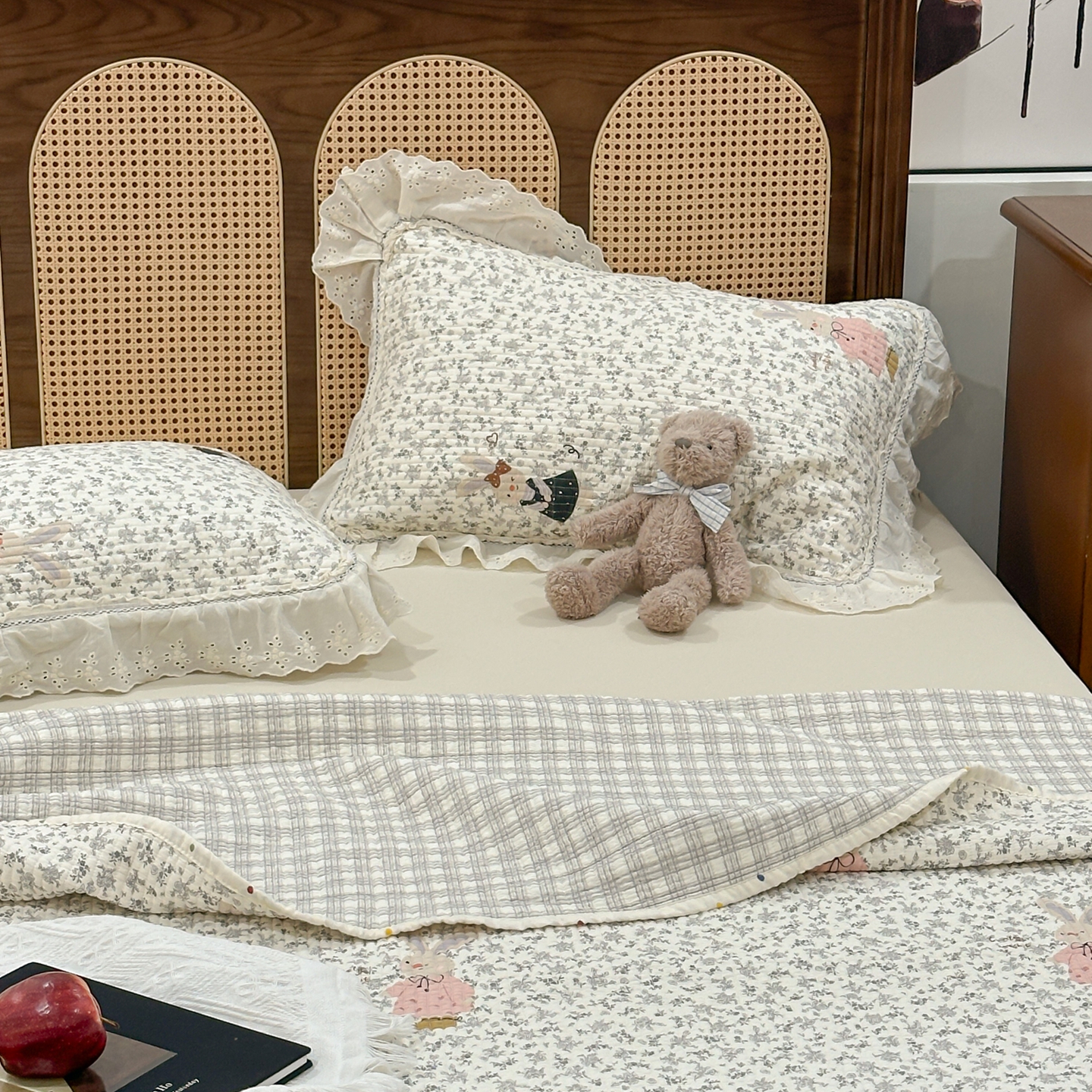 床盖工厂店 2025新款法式双面全面填充棉花床盖三件套 哆咪兔