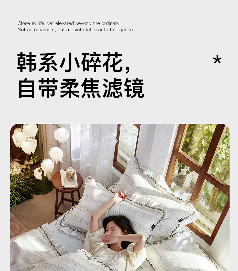 卡姿家纺 2026春夏韩版小碎花双层花边系列 浅纹蓝