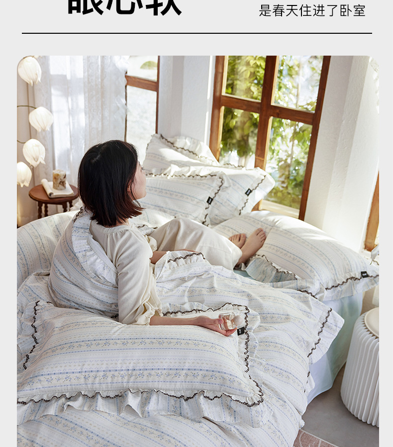 商品名称:卡姿家纺 2026春夏韩版小碎花双层花边系列 浅纹蓝