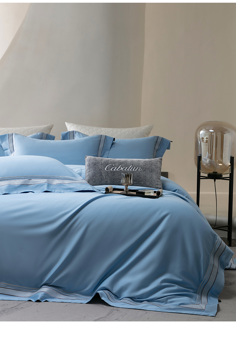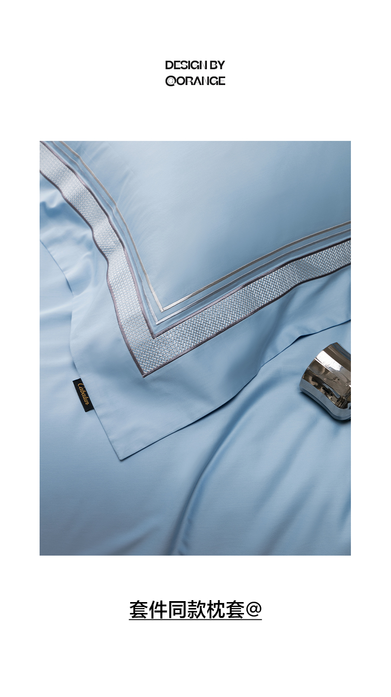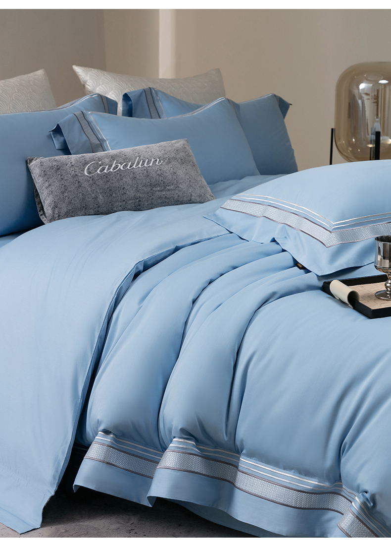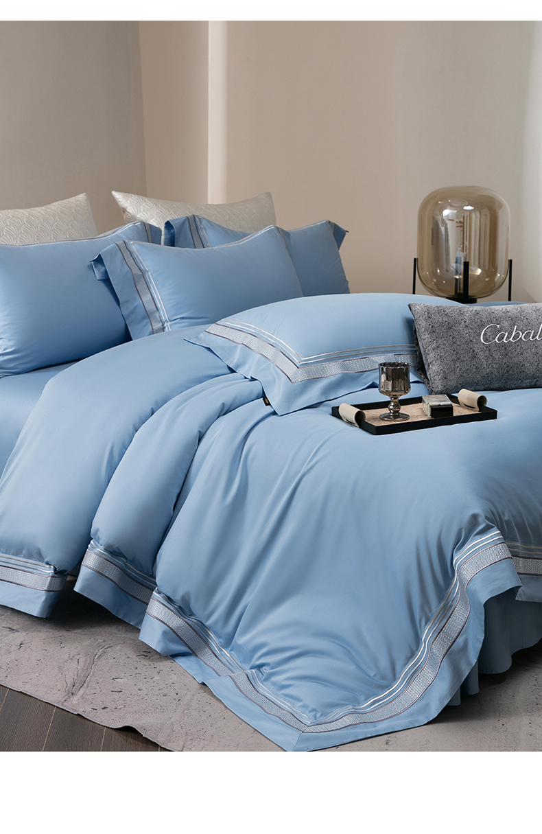 商品名称:卡巴伦家纺 2026新款简奢高定超细旦全棉纯棉绣边系列四件套-斯丹娜(会员:套件-20元 商品价格不得低于:标准:458元) 斯丹娜-冰川蓝