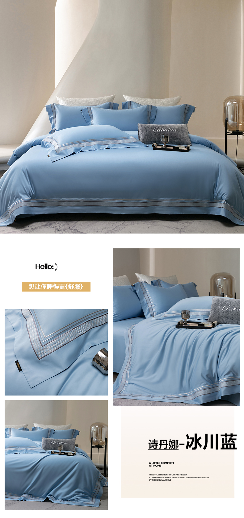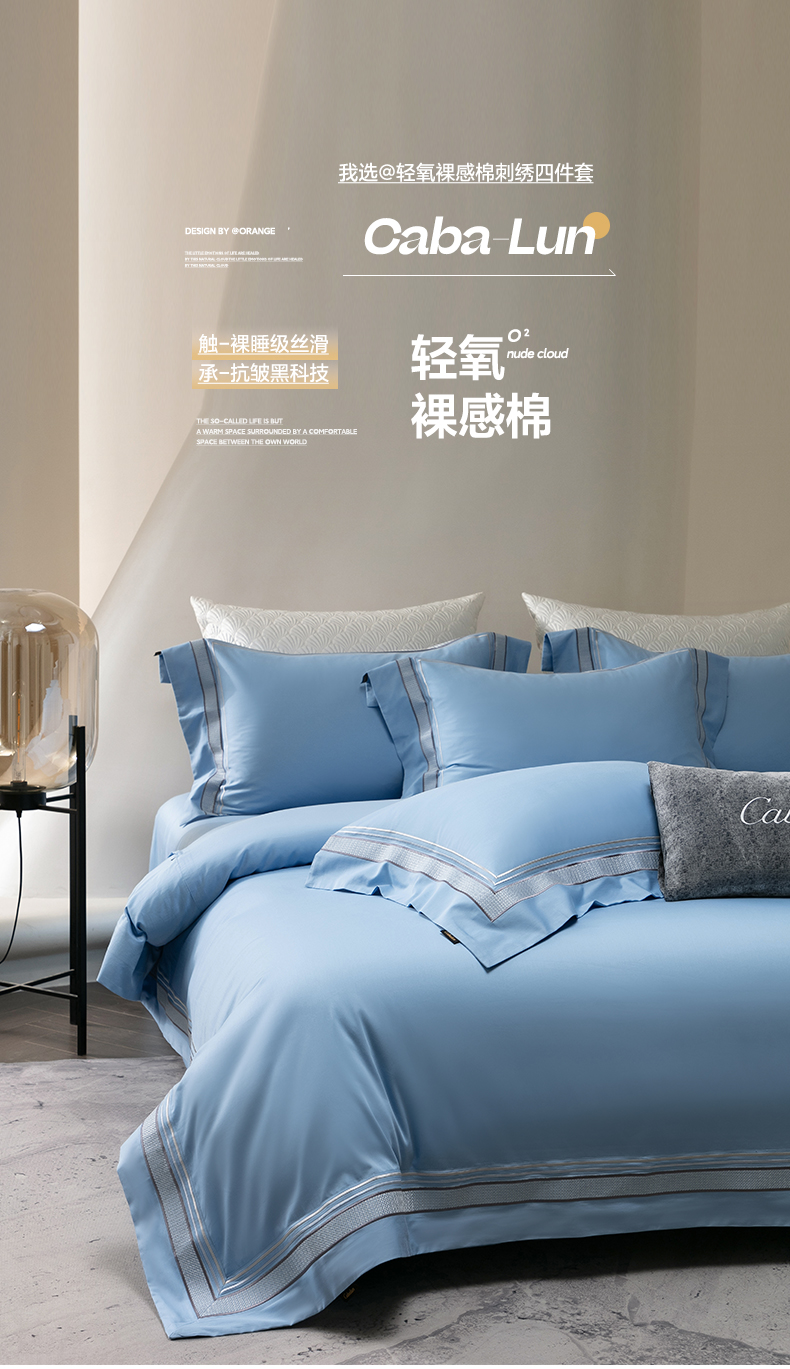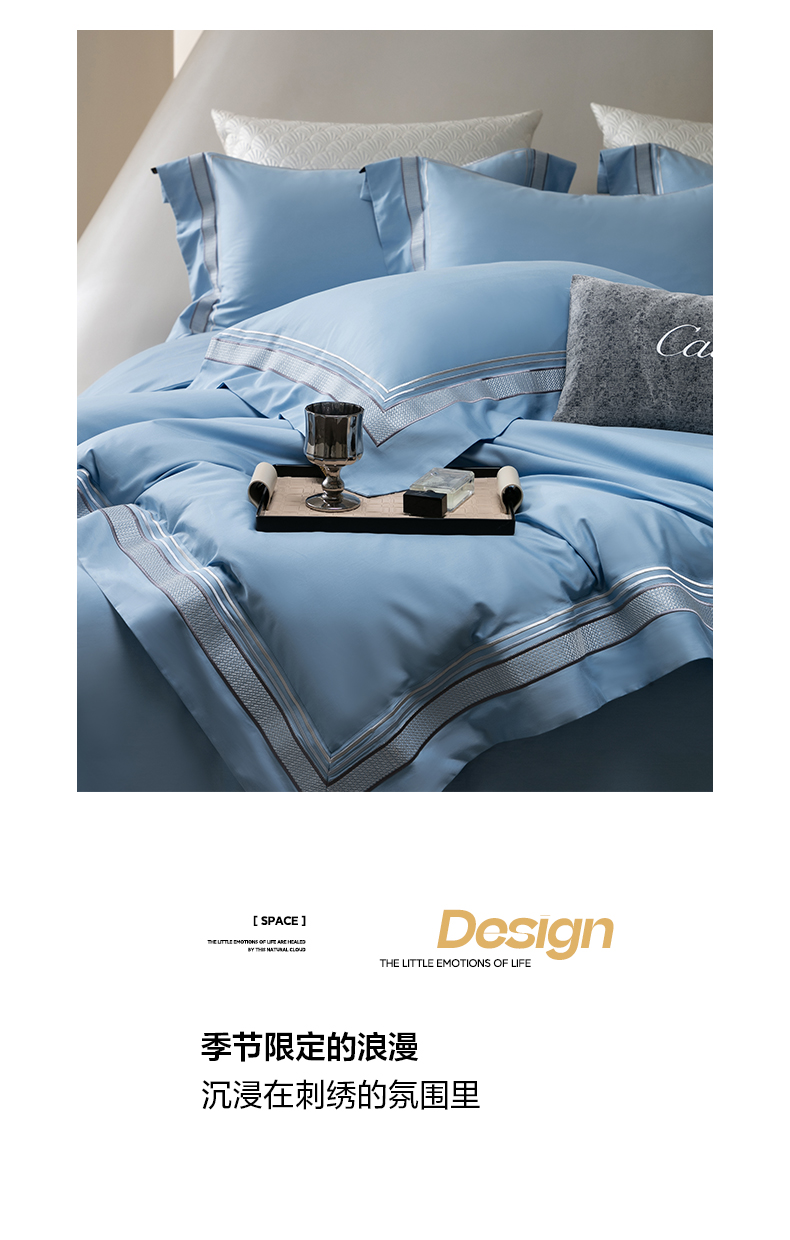 商品名称:卡巴伦家纺 2026新款简奢高定超细旦全棉纯棉绣边系列四件套-斯丹娜(会员:套件-20元 商品价格不得低于:标准:458元) 斯丹娜-冰川蓝
