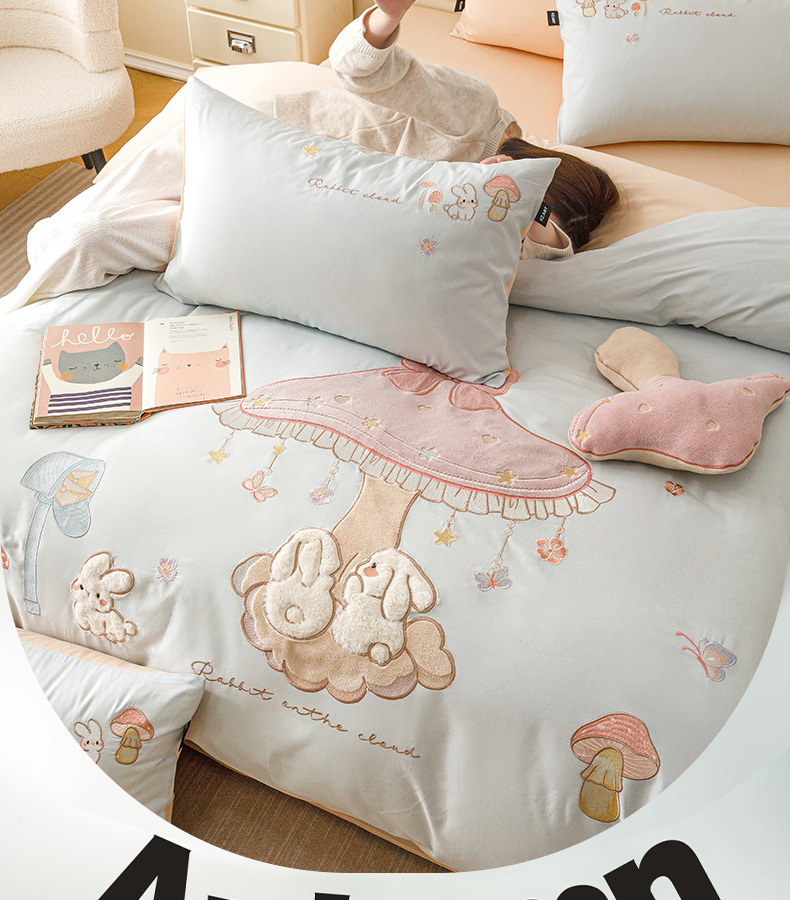 (总)卡姿家纺 2025春夏新款ins风毛巾绣—葡萄小兔子系列四件套,葡萄小兔子-粉,葡萄小兔子-蓝,葡萄小兔子-紫