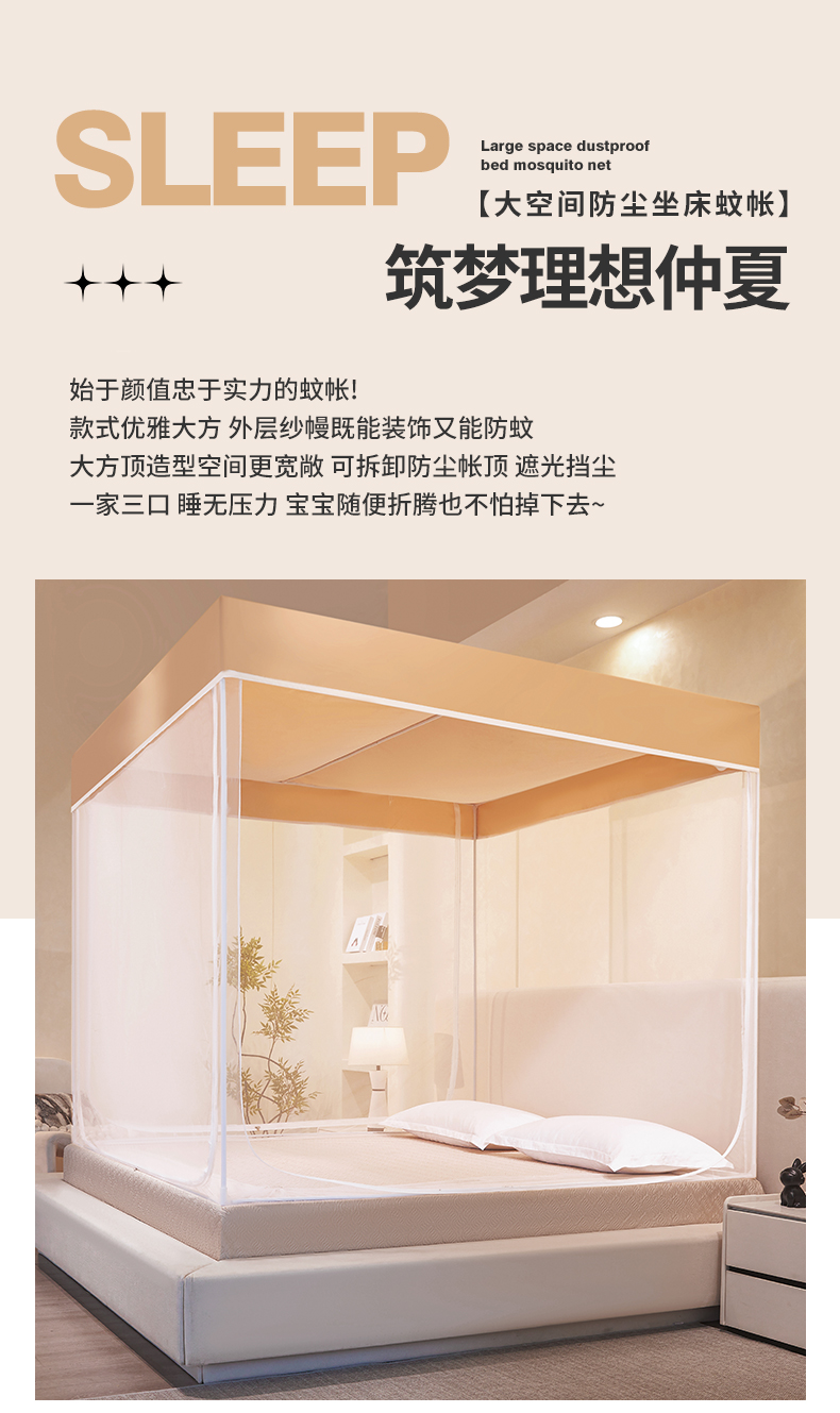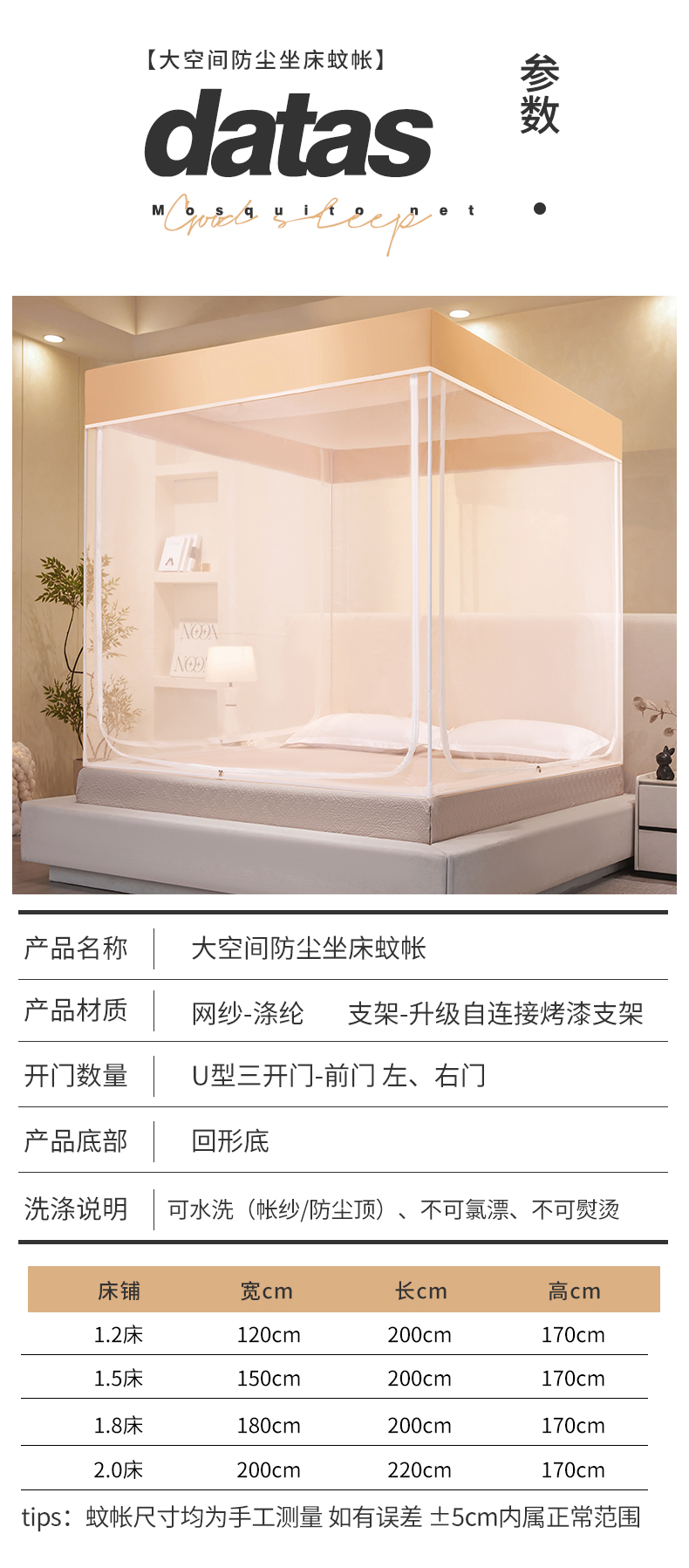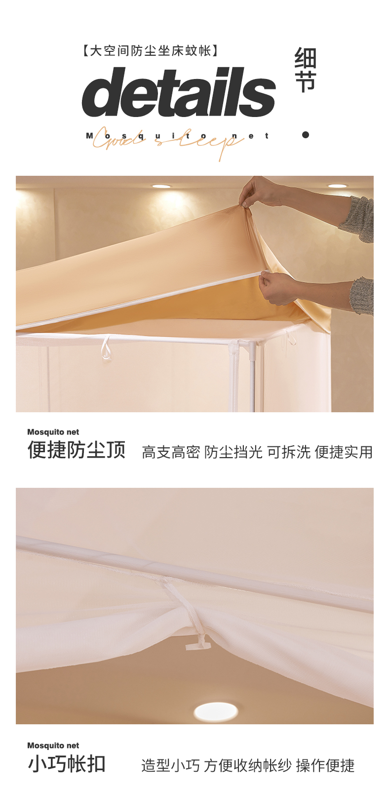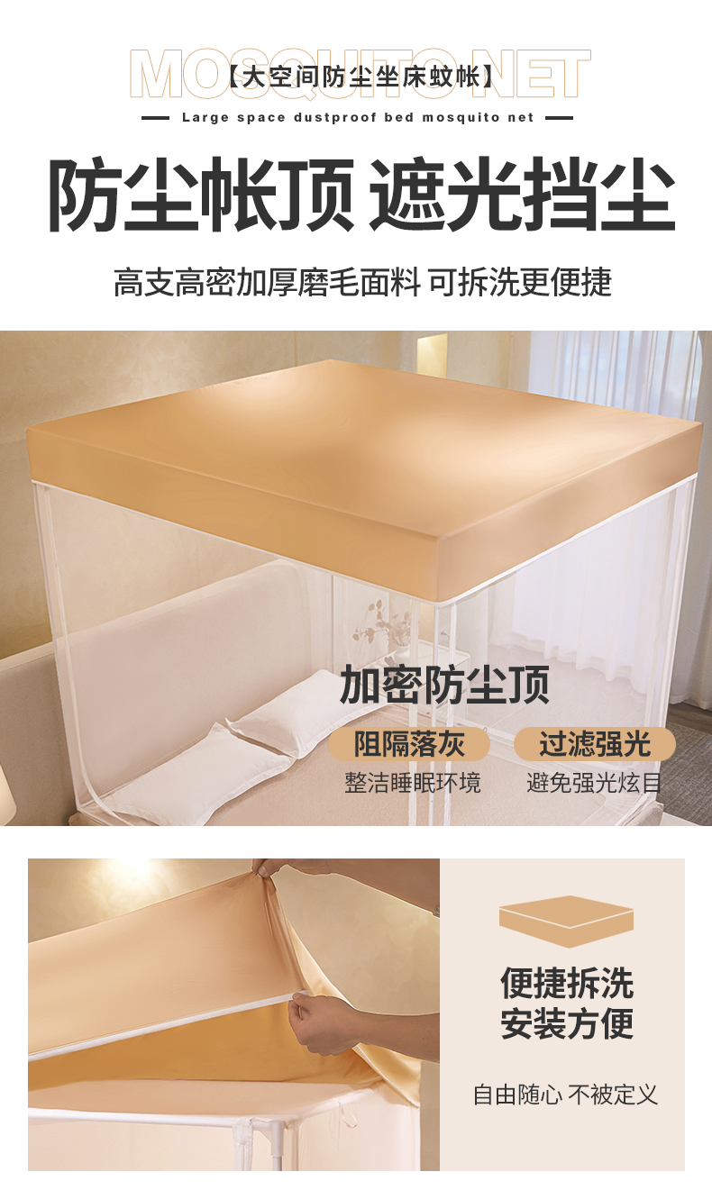 当前位置: 91家纺网 > 商品网购 > 床上用品 > 蚊帐 > 坐床式蚊帐 > 世婕 2026新款大空间防尘坐床蚊帐-素夏 素夏 卡其