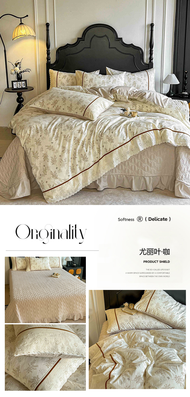(总)美梦家纺 2026新款高克重全棉花边云感棉床盖四件套,希雅莉·米,雅格·粉,樱桃蜜·咖,尤丽叶·咖,紫藤碎花·咖,莓莓素语·粉,暖小象·兰,浅叶·米,希雅莉·灰