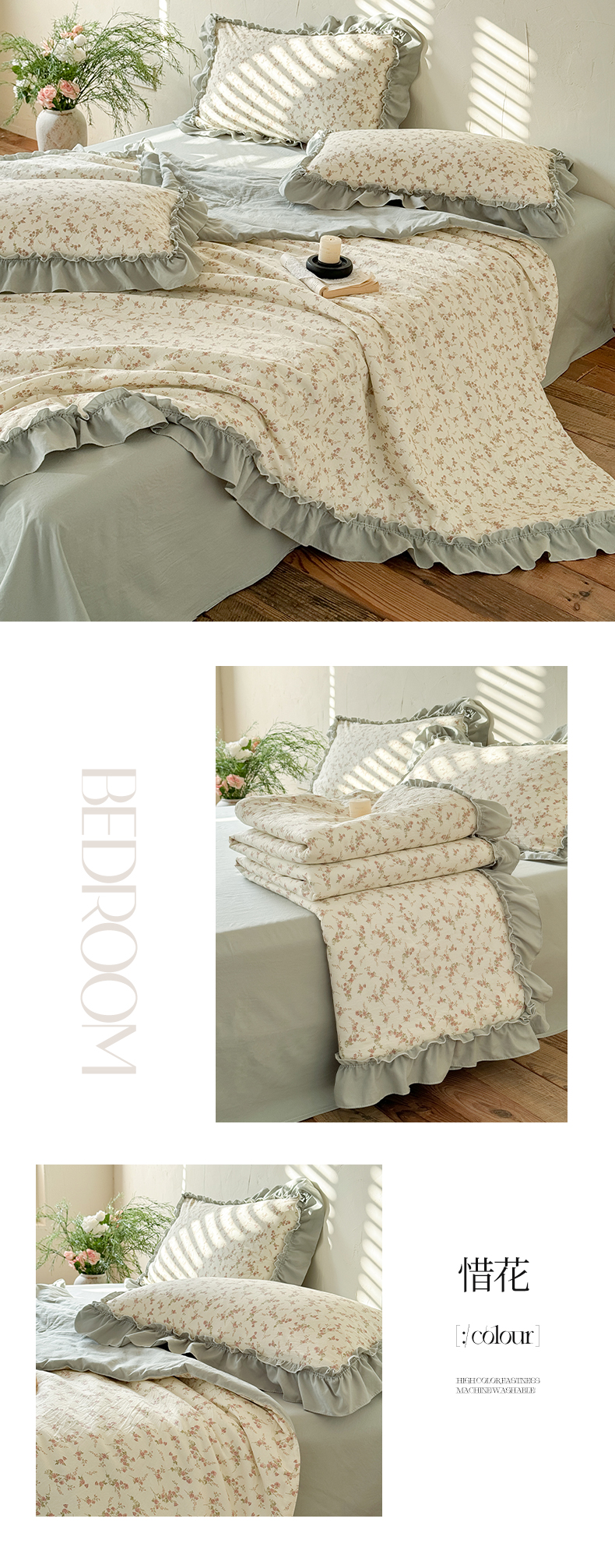 • 91家纺网 家纺一手货源 找家纺 迷尚家居 2026新款云朵棉印花花边夏被四件套 线条猫