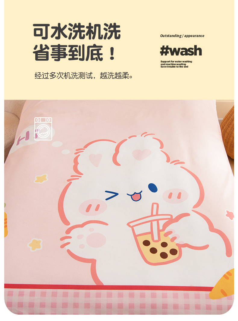 (总)新款ins风全棉A类40s水洗棉贴布绣花四件套儿童三件套上下铺床套件,长耳兔,开心芝士,宇航梦,彩虹鸭,小鳄莱莱