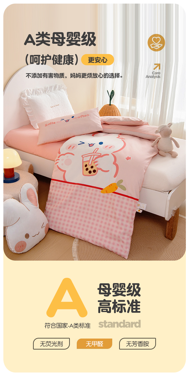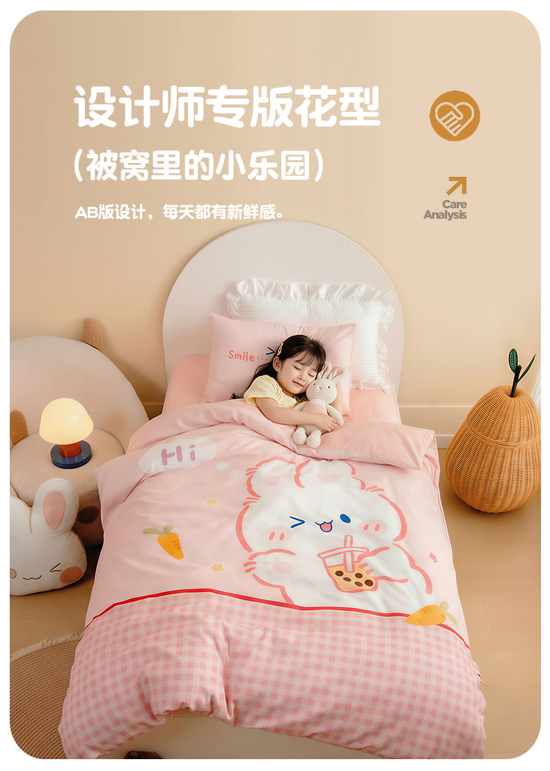 商品名称:绒梦里 2026新款A类全棉纯棉卡通大版幼儿园三件套 奶茶兔兔(另垫套有60*150cm/70*150cm/80*150cm/88*168cm/80*180cm)特殊垫套尺寸的价格咨询客服微信哦!