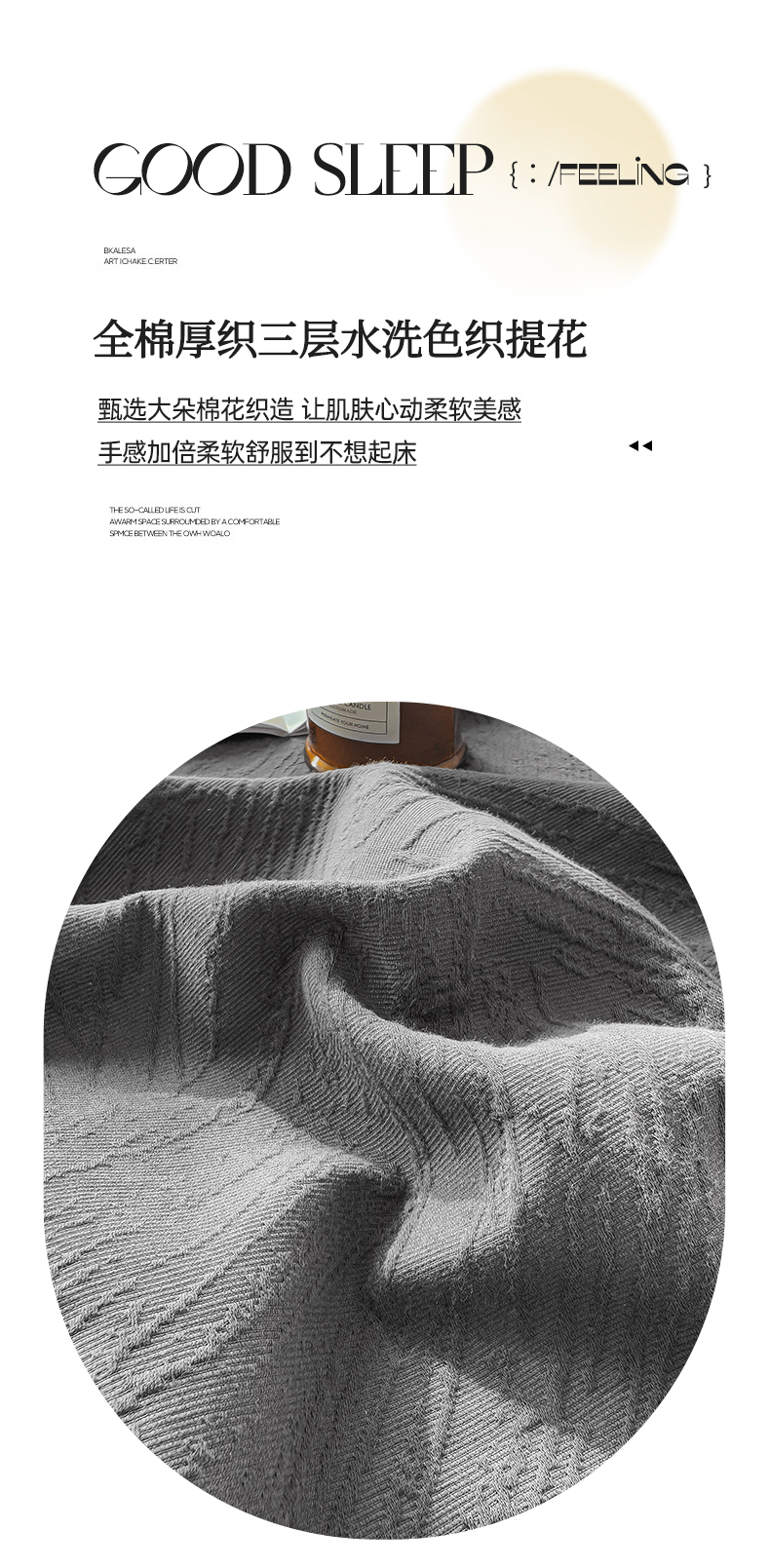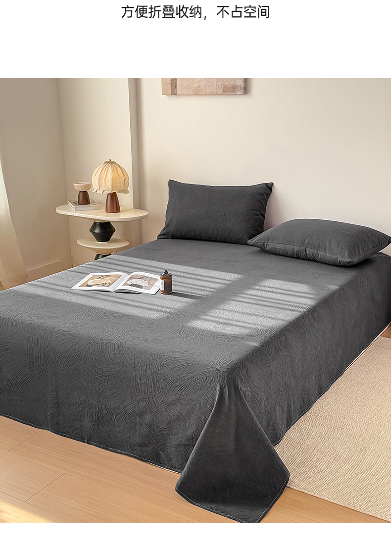 女子家纺 2026新款全棉厚织三层水洗色织提花床单 柔丝漫语-素墨