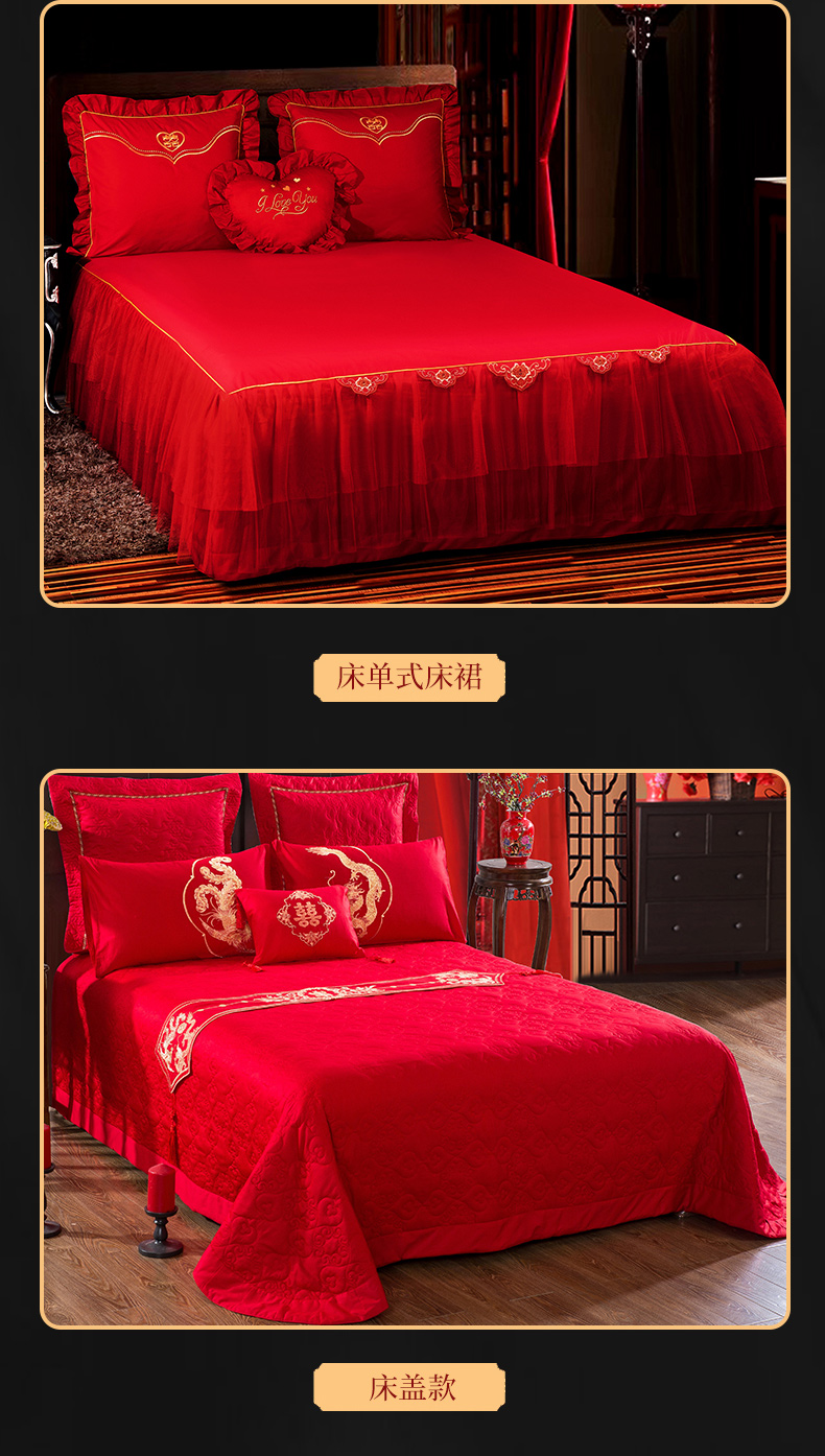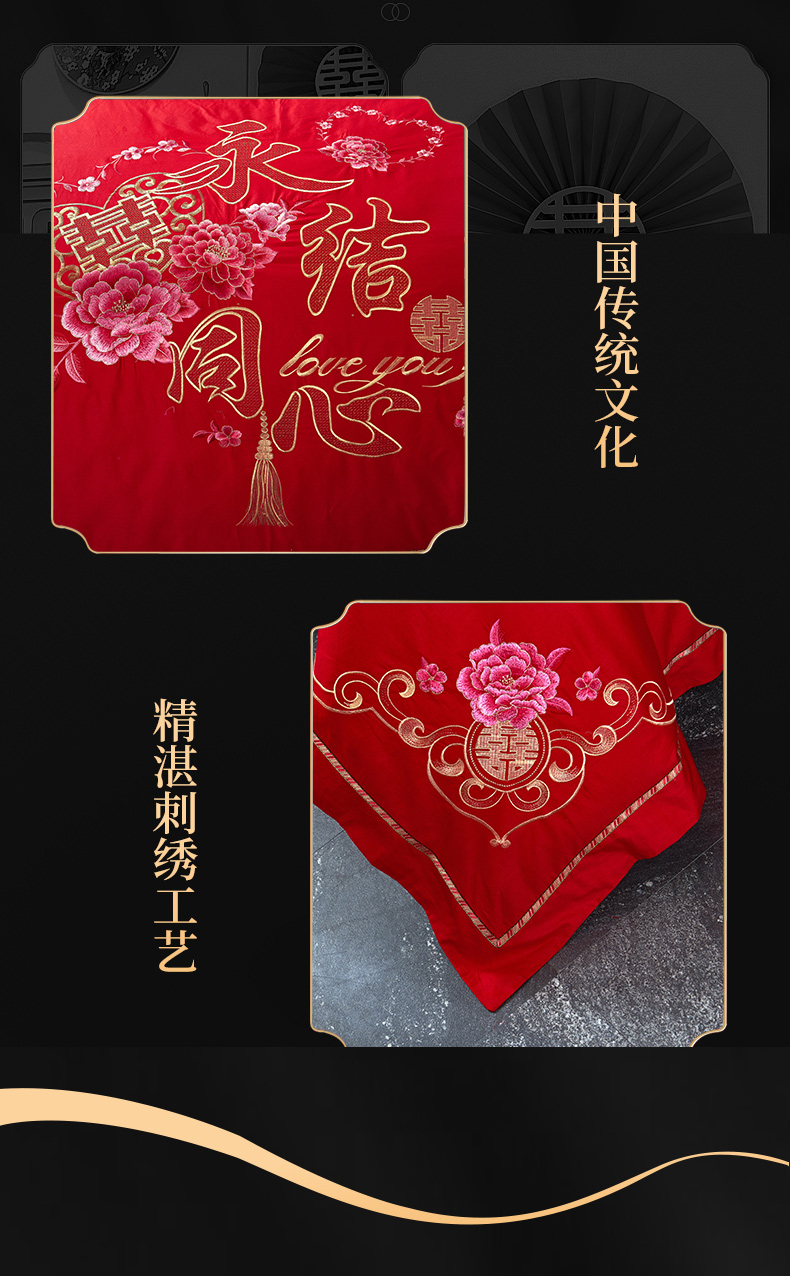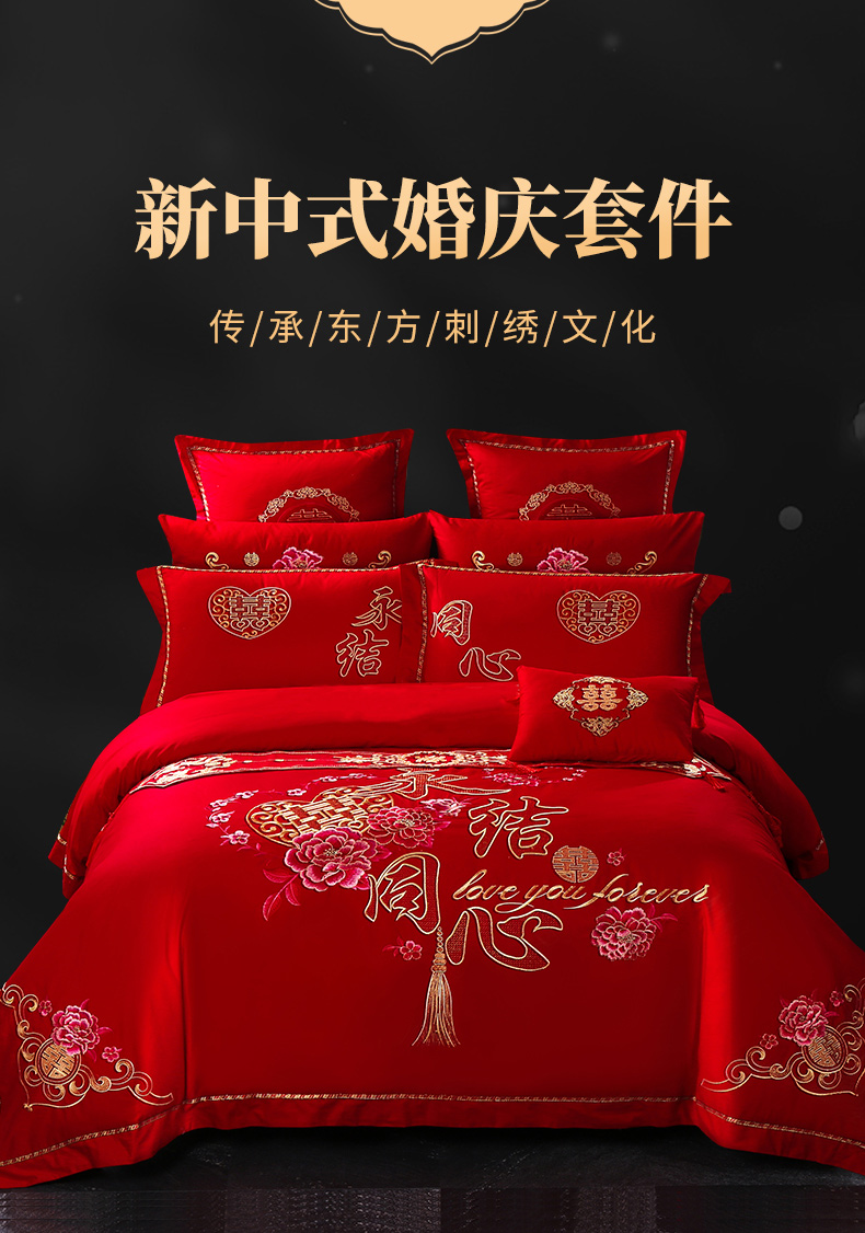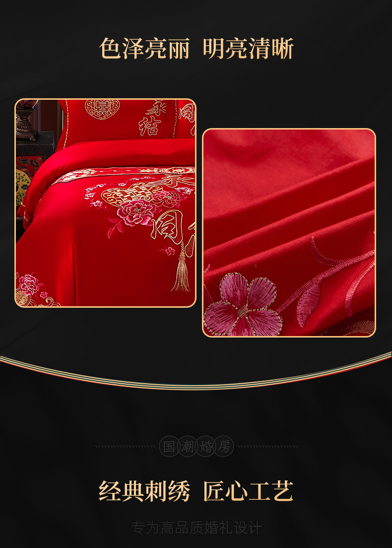 (总)慕她家纺 2026慕她大花工艺款全棉纯棉婚庆四件套大红色刺绣结婚床上用品,鸳鸯贺喜,喜韵江山,喜结连理,花开志喜,喜嫁,双喜临门,天赐良缘,龙凤添喜,龙凤团圆,缔结良缘 红,缔结良缘 金,凤冠霞帔,福喜龙凤,欢喜龙凤,佳偶天成,龙凤呈祥,龙凤佳缘,龙凤送子,龙凤祥和,龙翔凤舞,龙啸凤吟,甜蜜龙凤,早生贵子,挚爱龙凤,百子登科,恩爱情深,繁花似锦,恋曲牡丹,美丽红妆,如愿,诗韵牡丹,走进幸福 红,走进幸福 金,百子江山,好运吉祥,吉祥龙凤,名门龙凤,眷恋龙凤,天生一对,执手龙凤,至尊龙凤,子孙满堂,百子贺喜