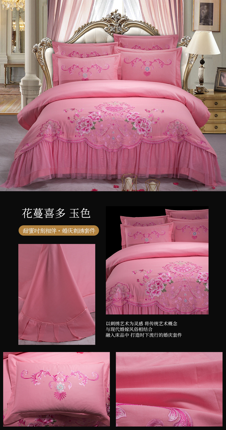 (总)慕她家纺 2025慕她婚庆四件套大红色全棉纯棉刺绣结婚床上用品-系列二,花蔓喜多大红,花蔓喜多粉色,花蔓喜多雪青,花蔓喜多玉色,佳人情浓,幸福花开,暗香大红,永结同心,鸳鸯龙凤,喜结良缘,皇家盛宴,皇家婚礼,皇室婚嫁,爱意永恒,浪漫爱情,浪漫婚礼,浪漫婚礼玉,龙凤百年,龙凤成双,龙凤贺喜,龙凤蜜语,龙凤齐眉,龙凤情深,龙腾凤舞,玫瑰蜜语,盘龙舞凤,盘龙戏凤,盘龙逸凤,卿卿我我,情定一生,丘比特,雀之蜜语,双喜百年,双喜良缘,送福百子,我们结婚啦,喜事多多,心心相印,百子迎亲,幸福恋歌,保证书,浪漫景色,欧典风情,千禧之恋,情有独钟,世纪之恋,喜事满屋,形影不离,幸福有约,永恒之恋,缘定今生,约会春天,真爱永恒,最强喜事