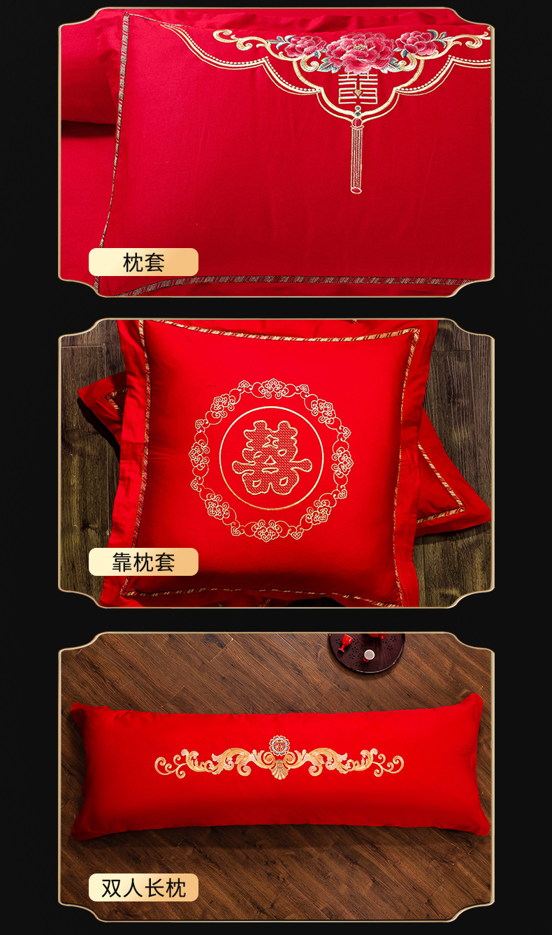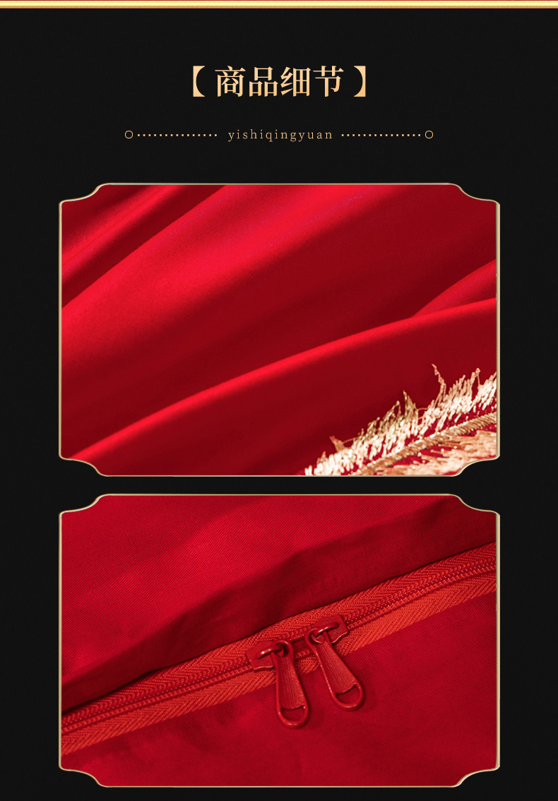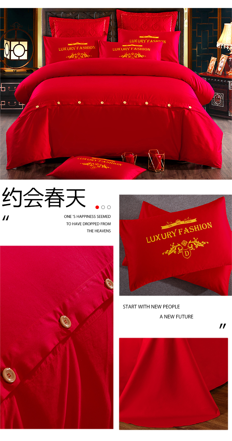 当前位置: 91家纺网 > 商品网购 > 床品套件 > 四件套 > 婚庆四件套 > 慕她家纺 慕她畅销款全棉纯棉婚庆四件套大红色刺绣结婚床上用品 龙凤情深