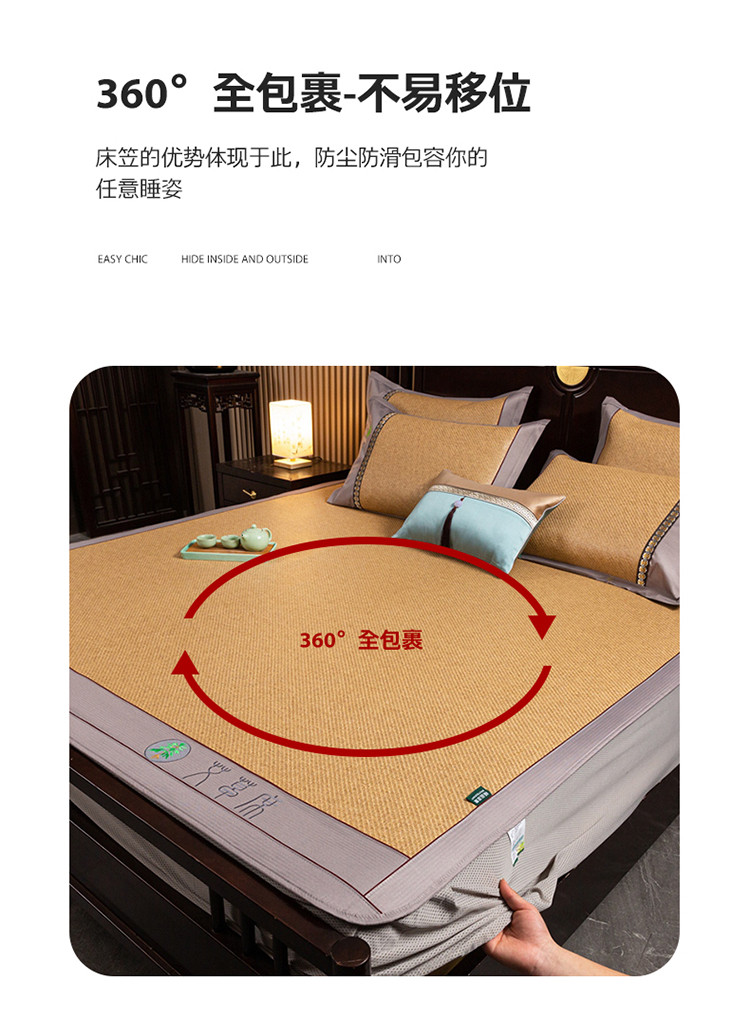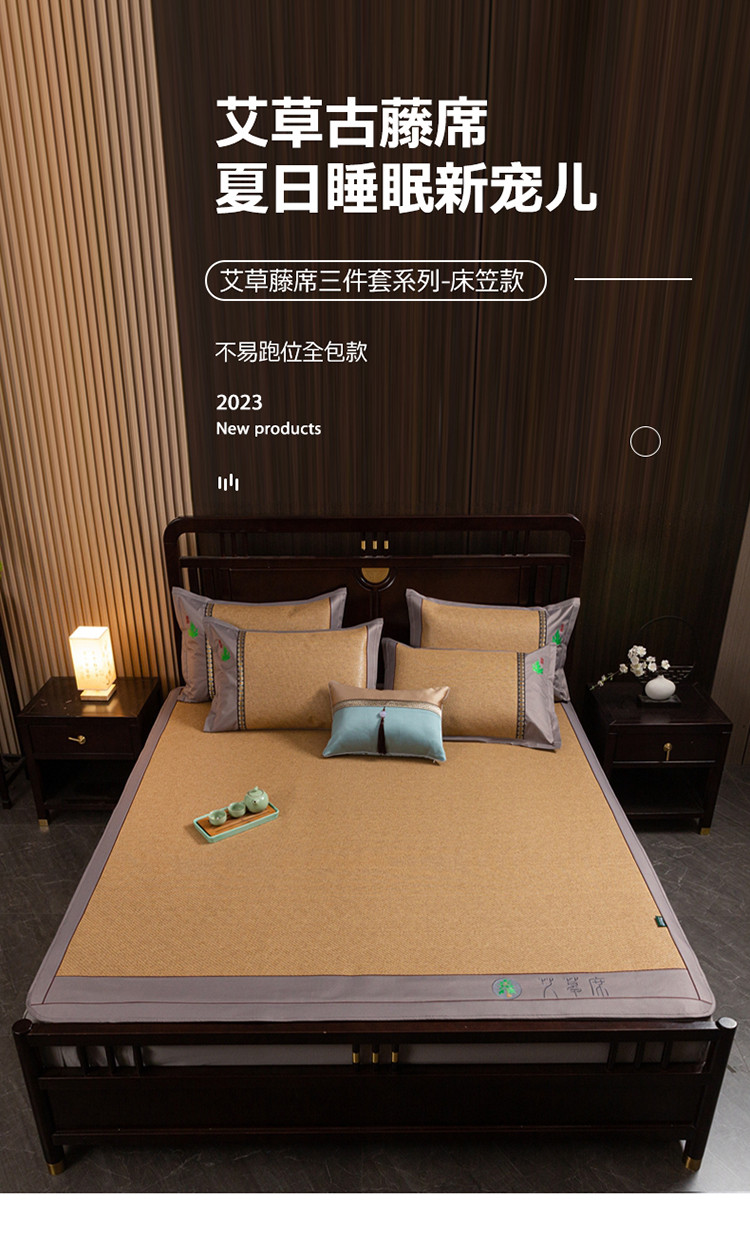 • 91家纺网 家纺一手货源 找家纺 简一 2026新款艾草古藤席床笠款凉席 (床笠)艾草席-黄藤
