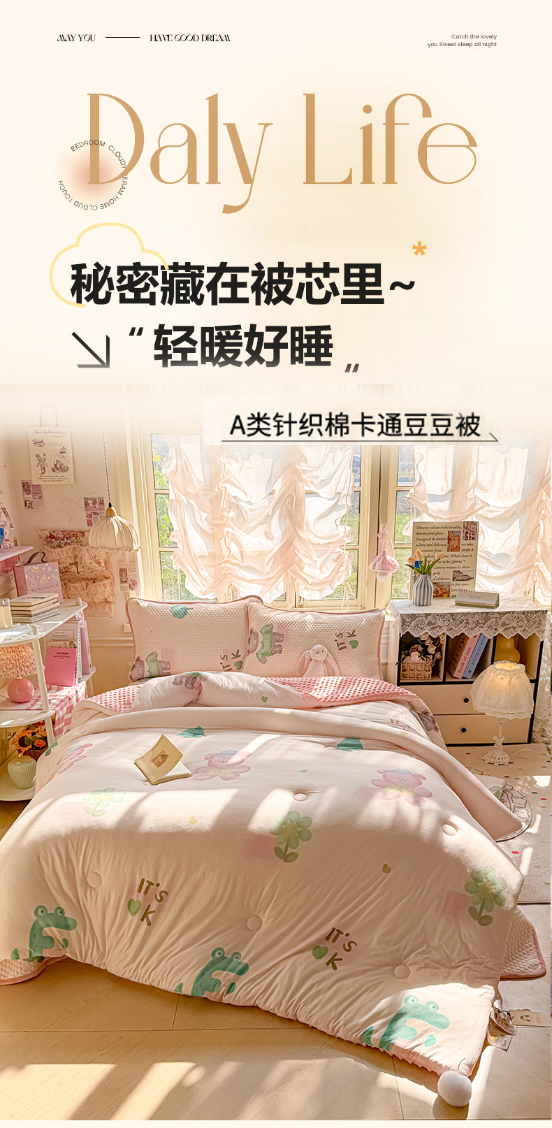 (总)丫丫家纺 2026直播热款A类针织棉豆豆被夏被春秋被空调被儿童学生大版卡通被子被芯,幸运星星,大头贴,粉熊和小鳄,鸿运当头,花仙子,可爱小熊,马内多多粉,兔兔与狗,旺旺人生,小虎鲸,小兔乖乖,要嘛有马,叠拍组合图