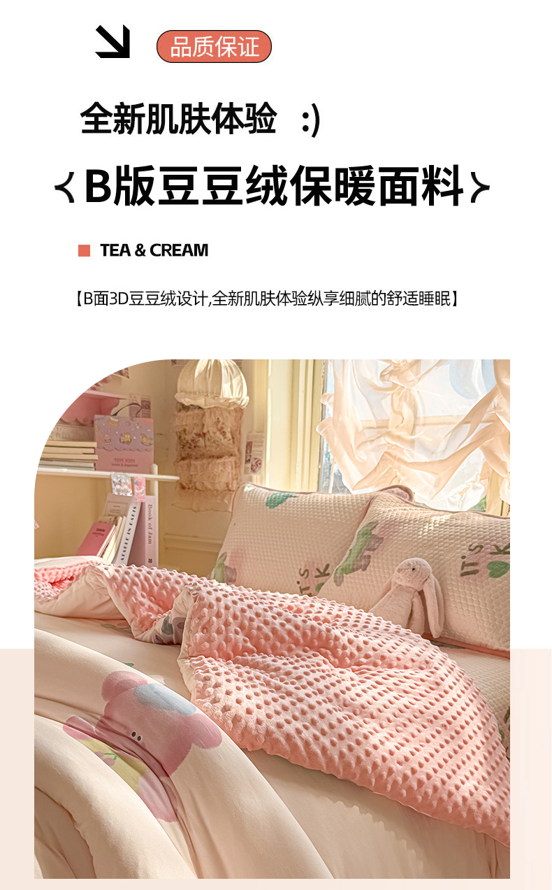 (总)丫丫家纺2025新秋冬加厚保暖全棉+豆豆绒四件套纯棉婴儿绒牛奶绒豆豆单被套单人双人加大号棉加绒三件套四件套 ,爱丽丝梦游,春意盎然,动物乐园,发财虎,粉色浪漫,格子小熊,撸喵,美丽蝴蝶结,萌熊软兔,梦幻熊仔,梦境小兔,女孩和熊,潘多拉小熊,甜心派对,童话镇,兔兔茶话会,仙女兔,小孩儿哥姐,音乐天才