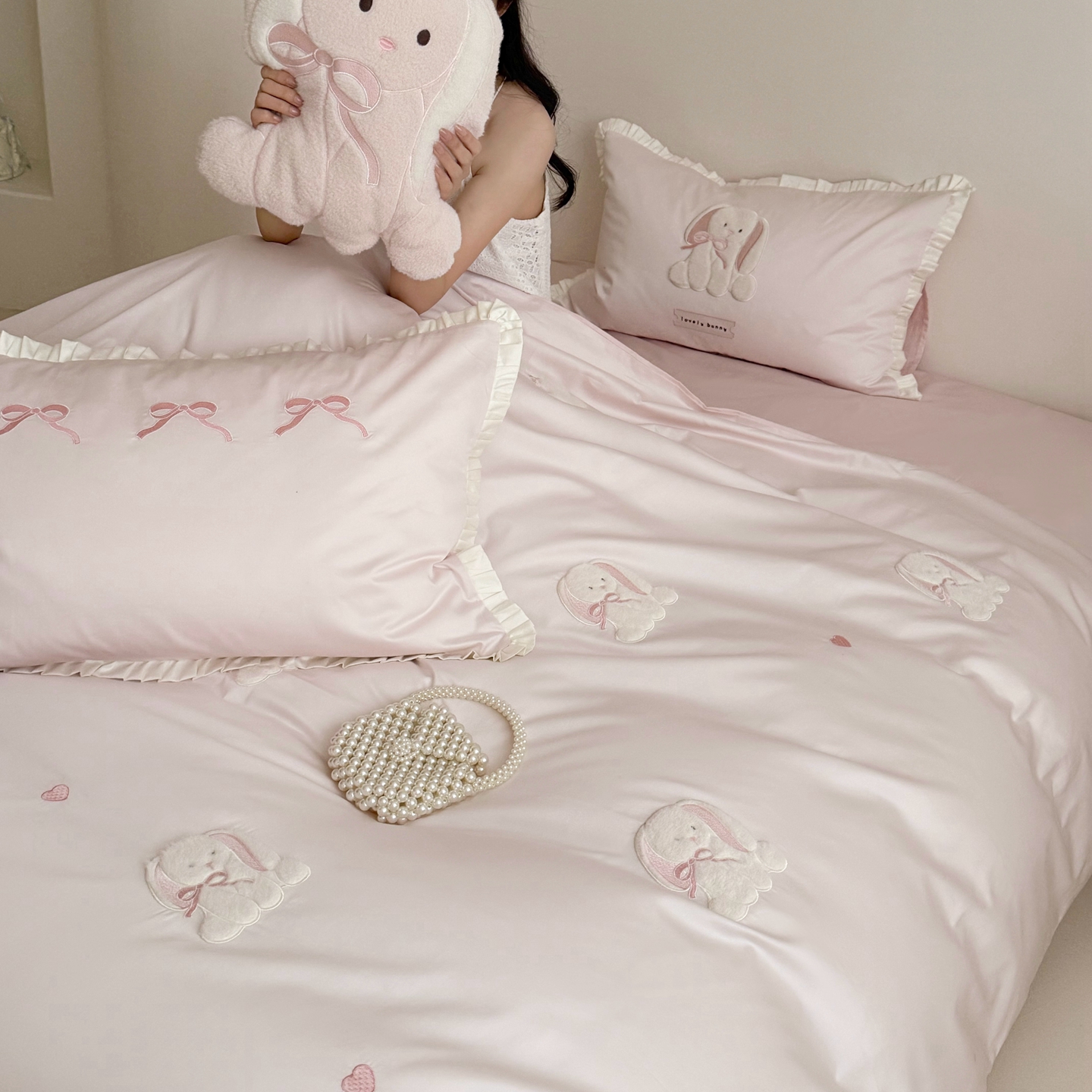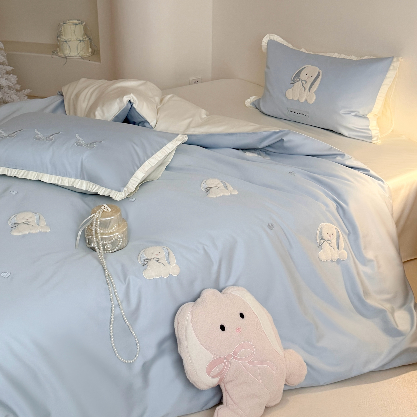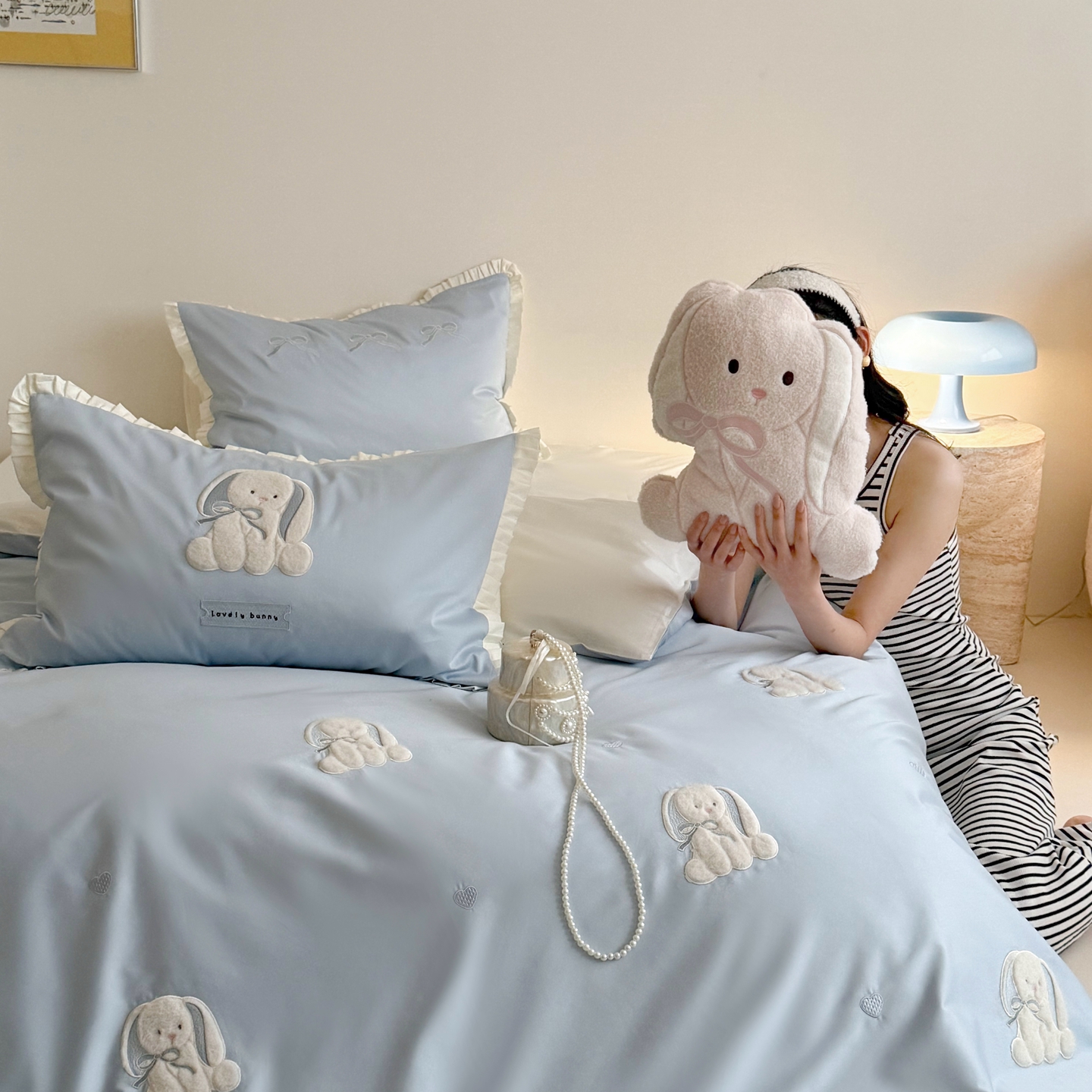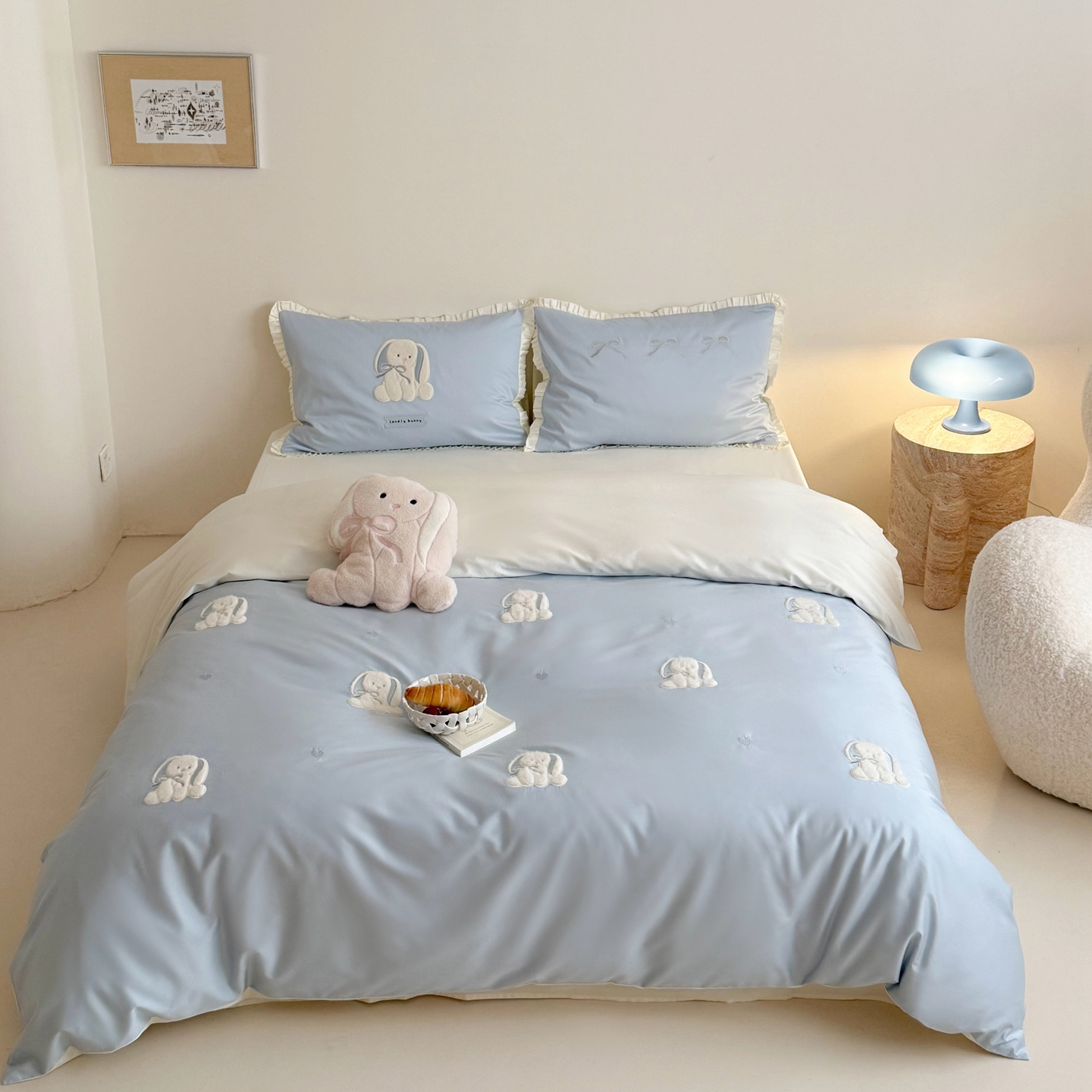 当前位置: 91家纺网 > 商品网购 > 床品套件 > 四件套 > 长绒棉四件套 > 鹿班家居 2026春夏新款100s长绒棉纯棉贴布绣四件套-萌兔日记(标准会员-20元) 萌兔日记-蓝色