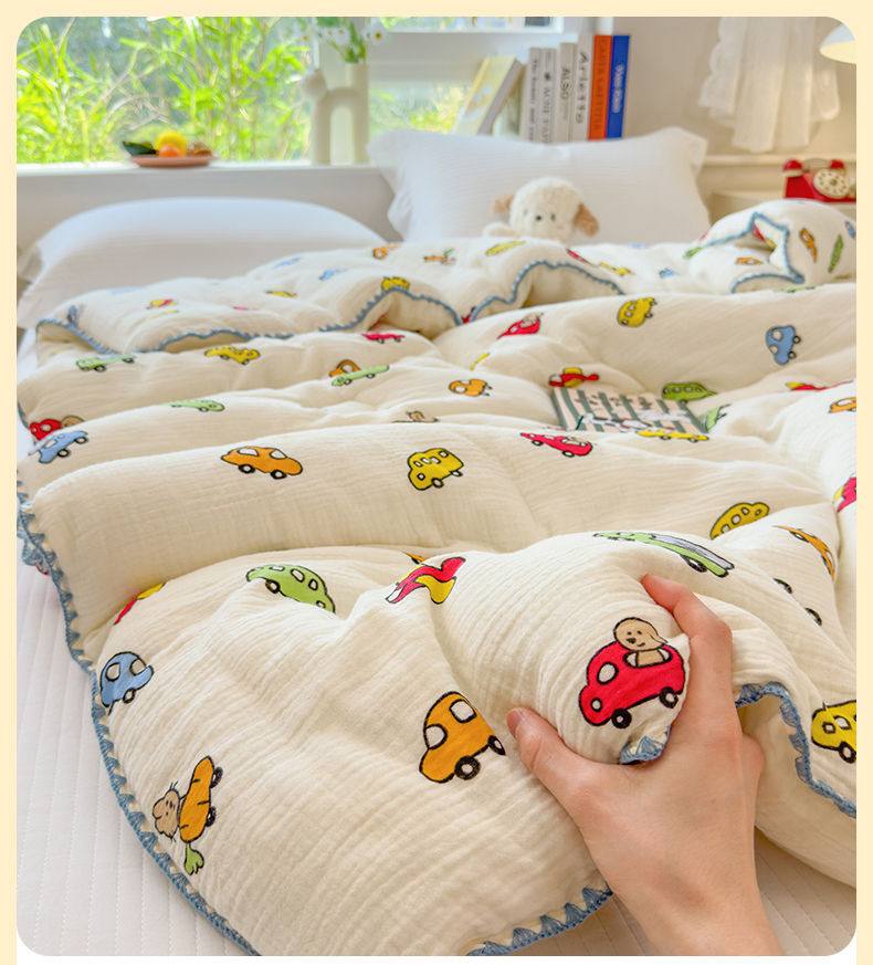 布凡家居 2026新款A类全棉皱皱纱大豆纤维春秋被秋冬被全棉纱布婴儿被全棉学生秋冬被 冬被-恐龙岛