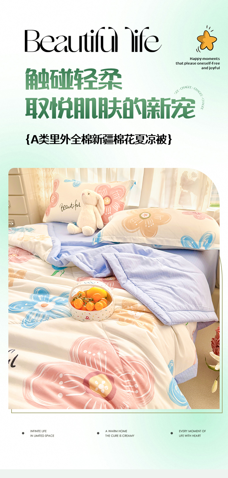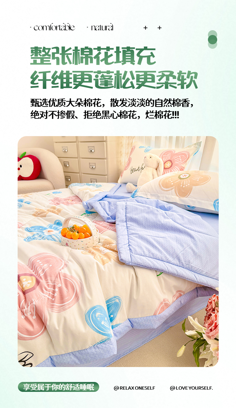 寝美资家居 2026新款A类里外全棉夏凉被四件套-风格二 春夕集