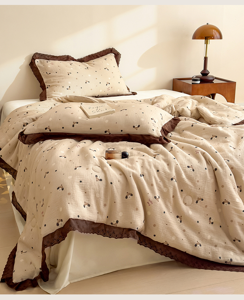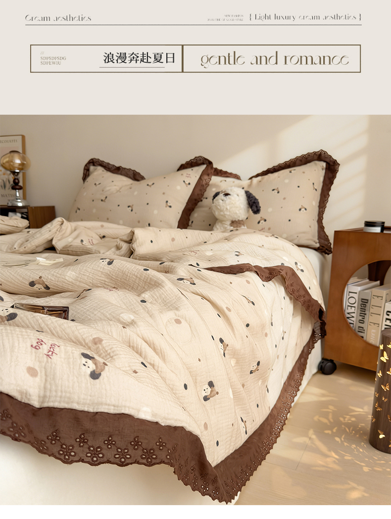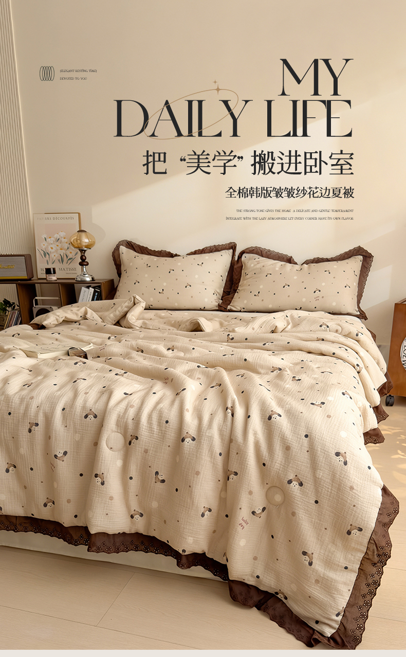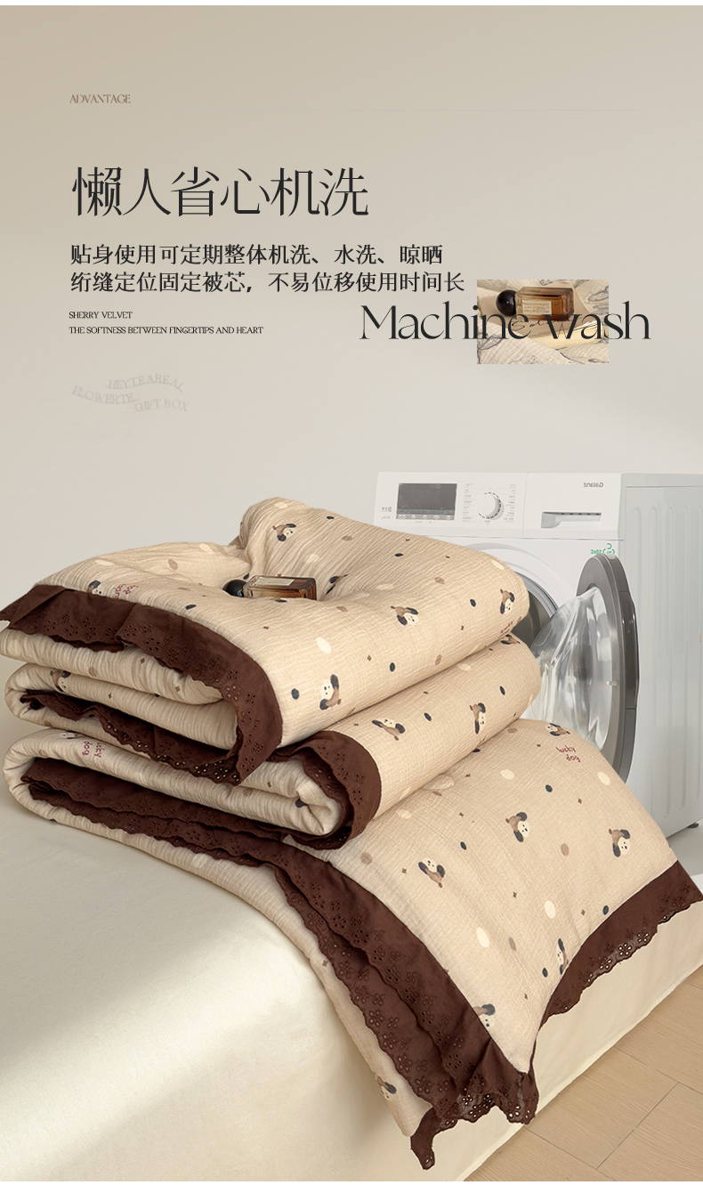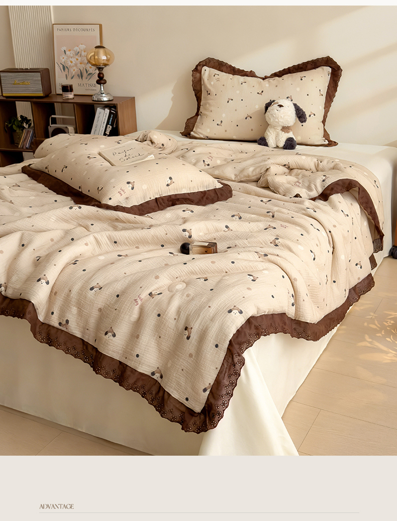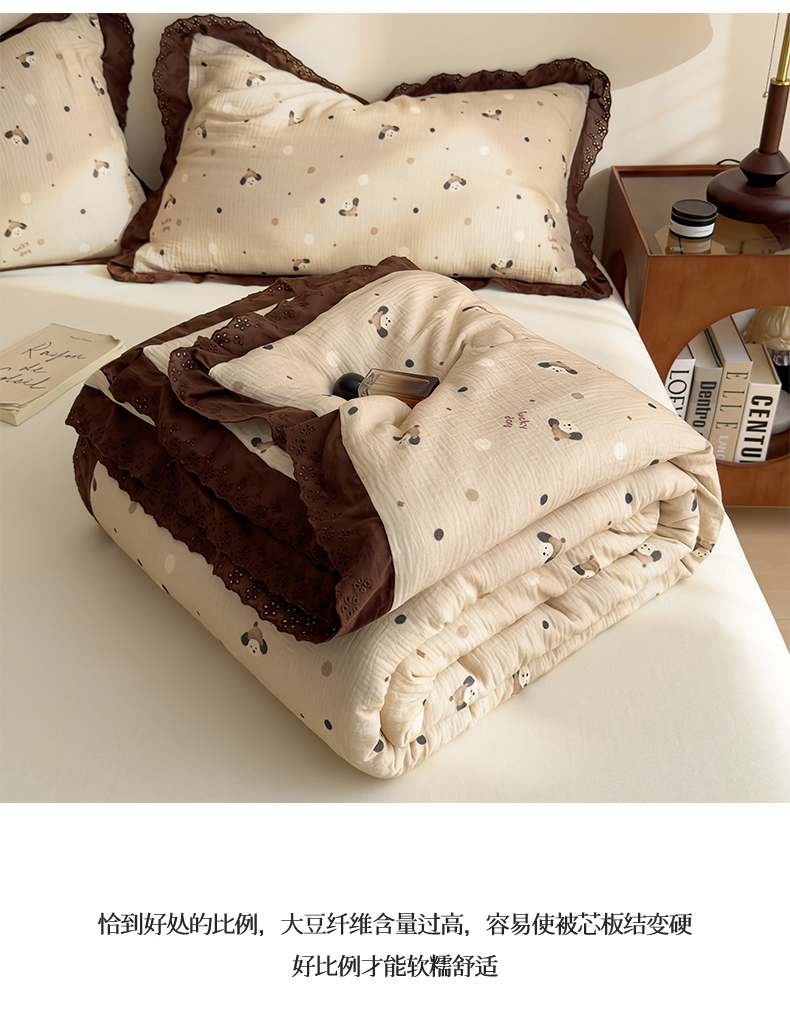 当前位置: 91家纺网 > 商品网购 > 被子 > 夏被 > 兄弟坊 2026新款A类美拉德全棉韩版皱皱纱花边大豆夏被夏凉被空调被午睡被 皱皱纱花边款-甜静花园