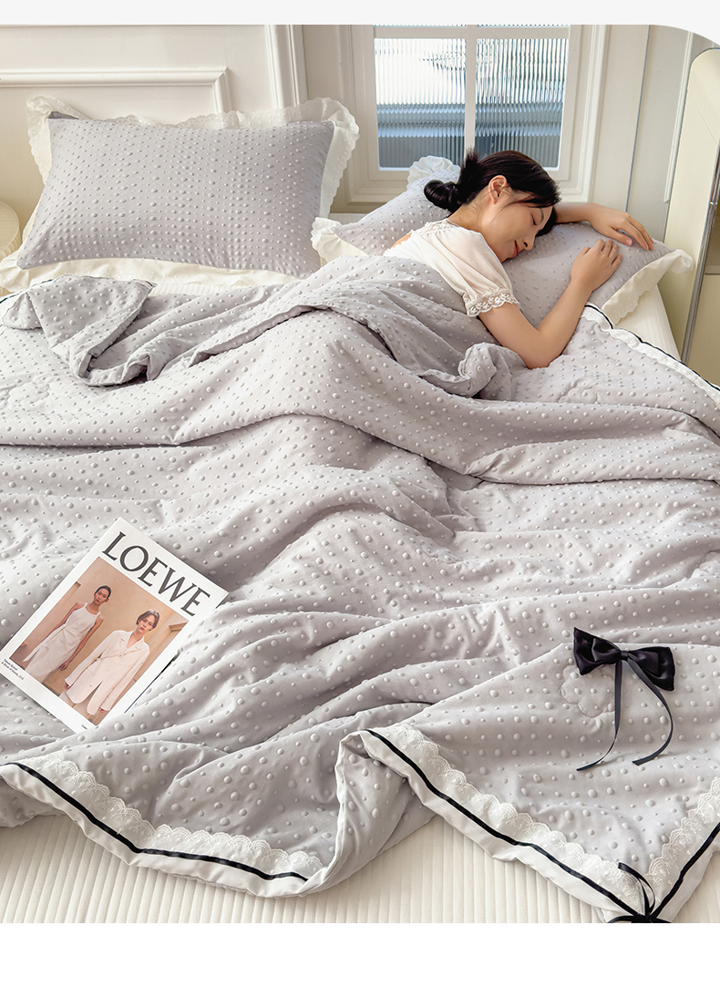 布凡家居 2026新款四层纱按摩豆豆被泡泡夏被子被芯 蝴蝶结-浅灰