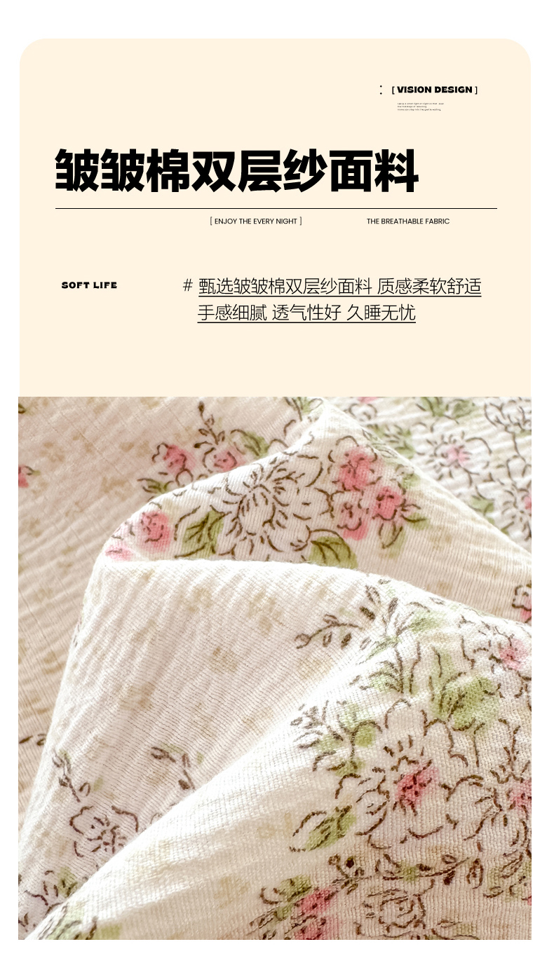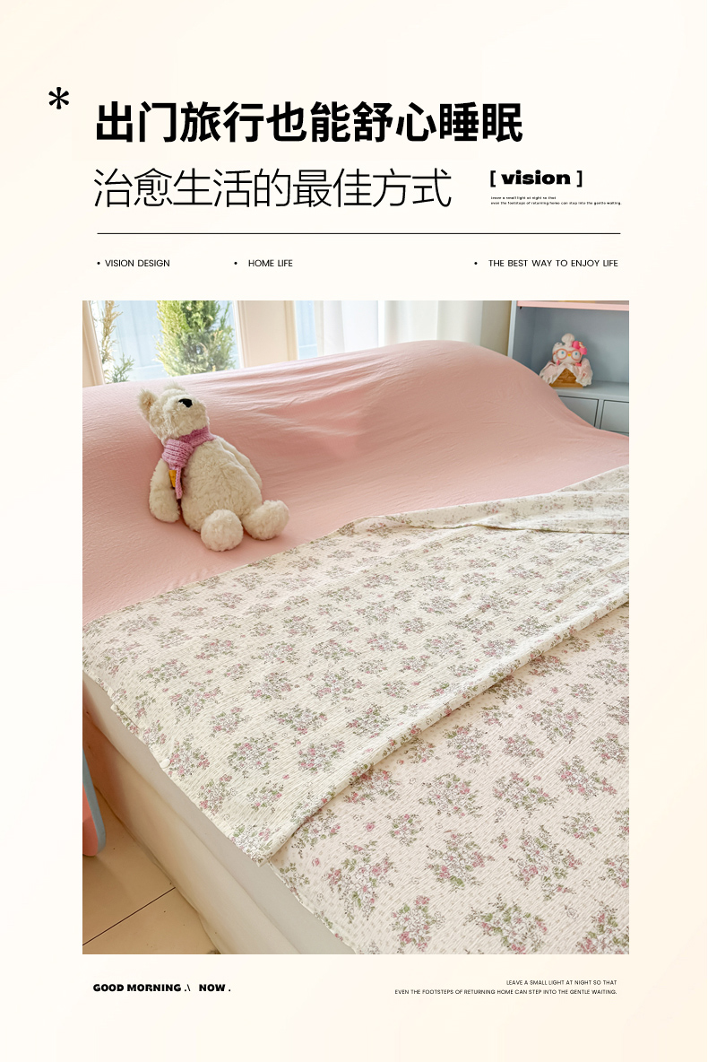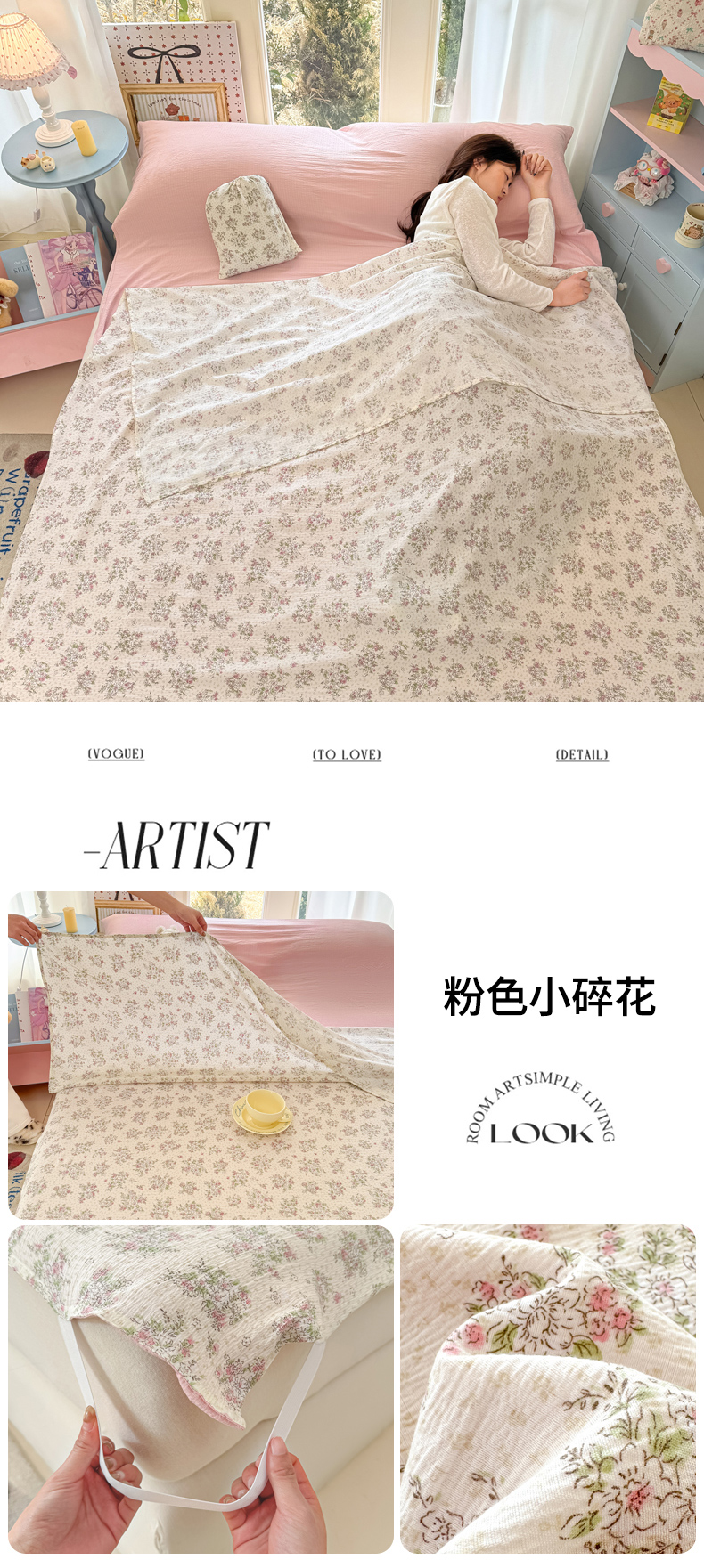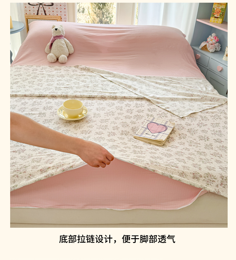商品名称:Sweet dreams甜梦 2026新款A类皱皱双层纱小清新酒店一体式旅行睡袋 粉色小碎花
